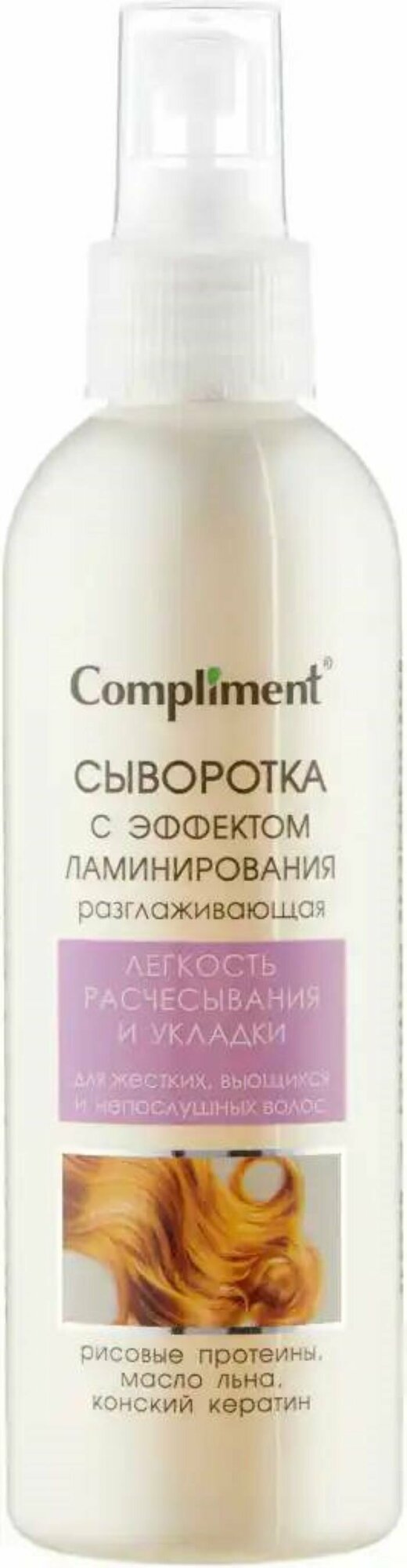 Compliment Сыворотка спрей для волос разглаживающая Ламинирование 200мл интересное: