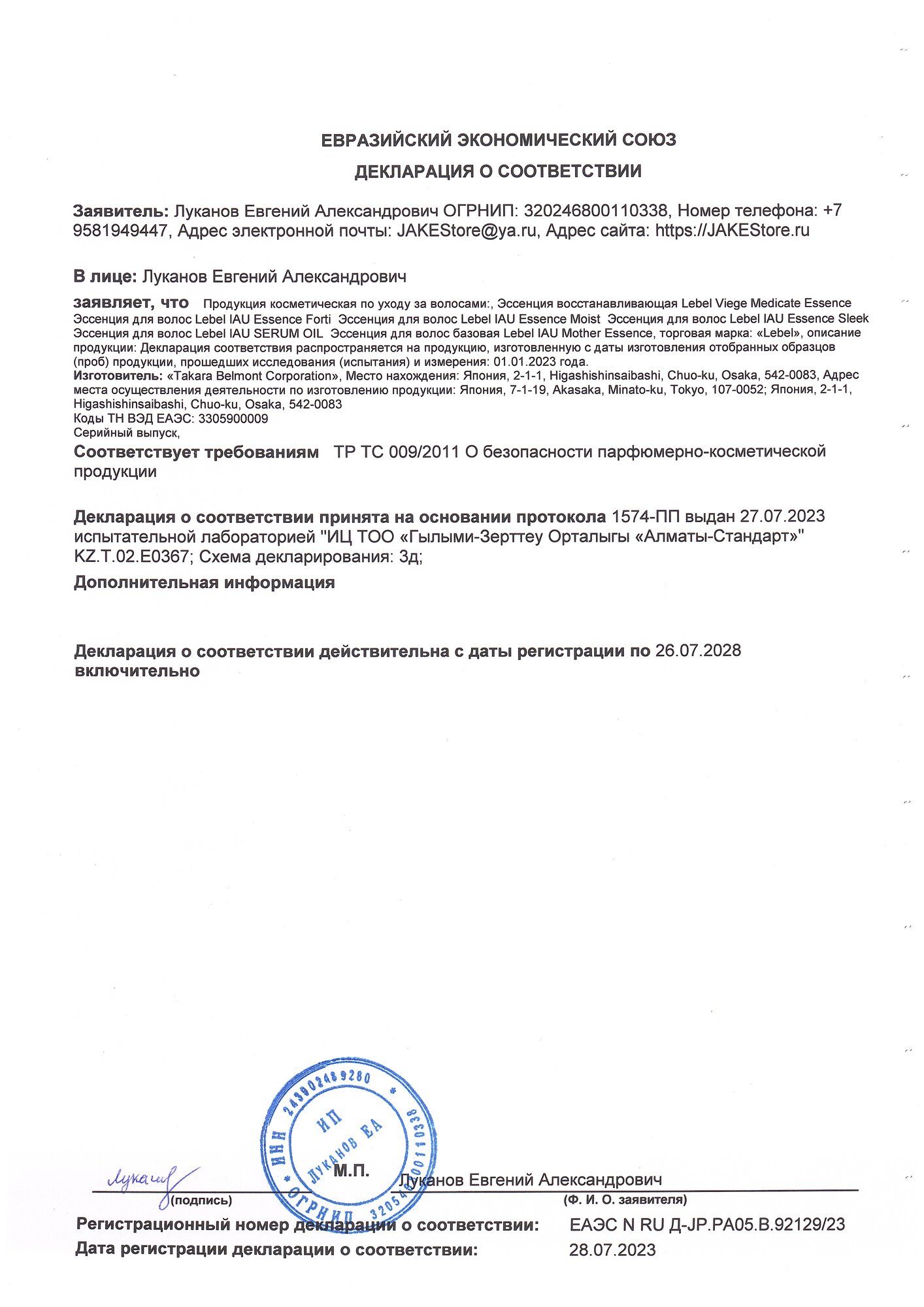 Lebel IAU Essence Moist 100 мл эссенция для волос интересное: