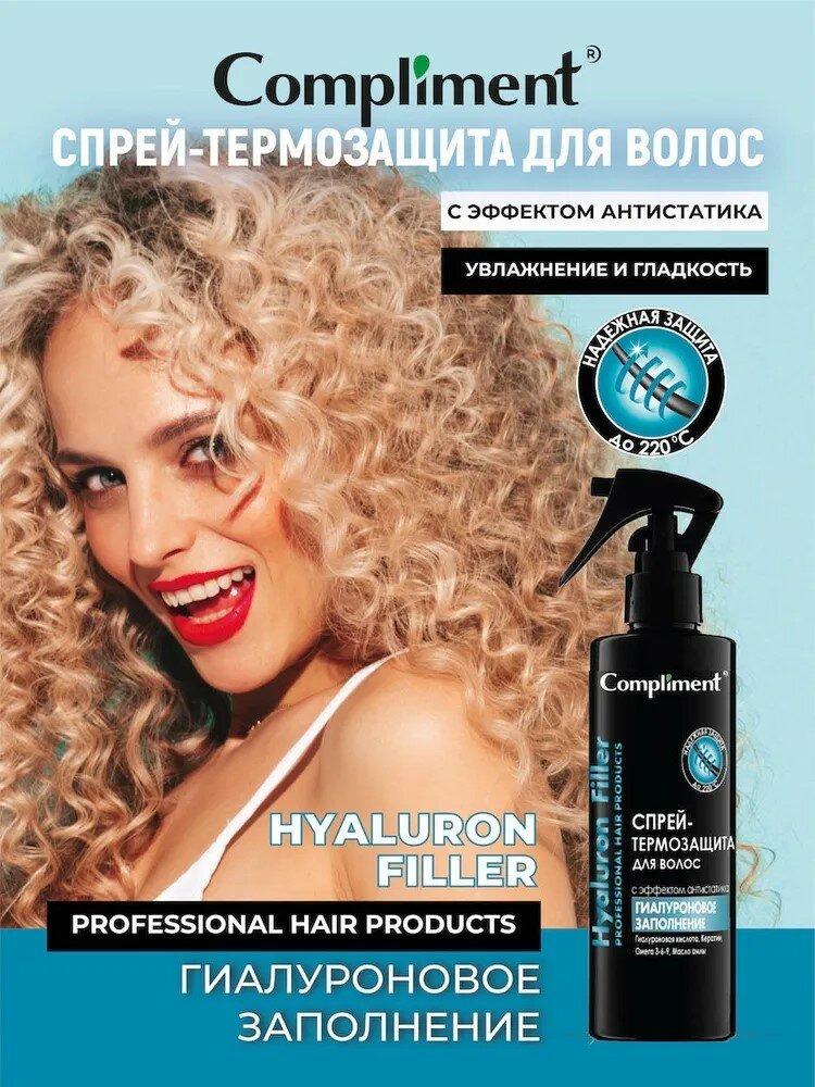 Купить Compliment Спрей-термозащита для волос c эффектом антистатика Hyaluron Filler Гиалуроновое заполнение, 200мл