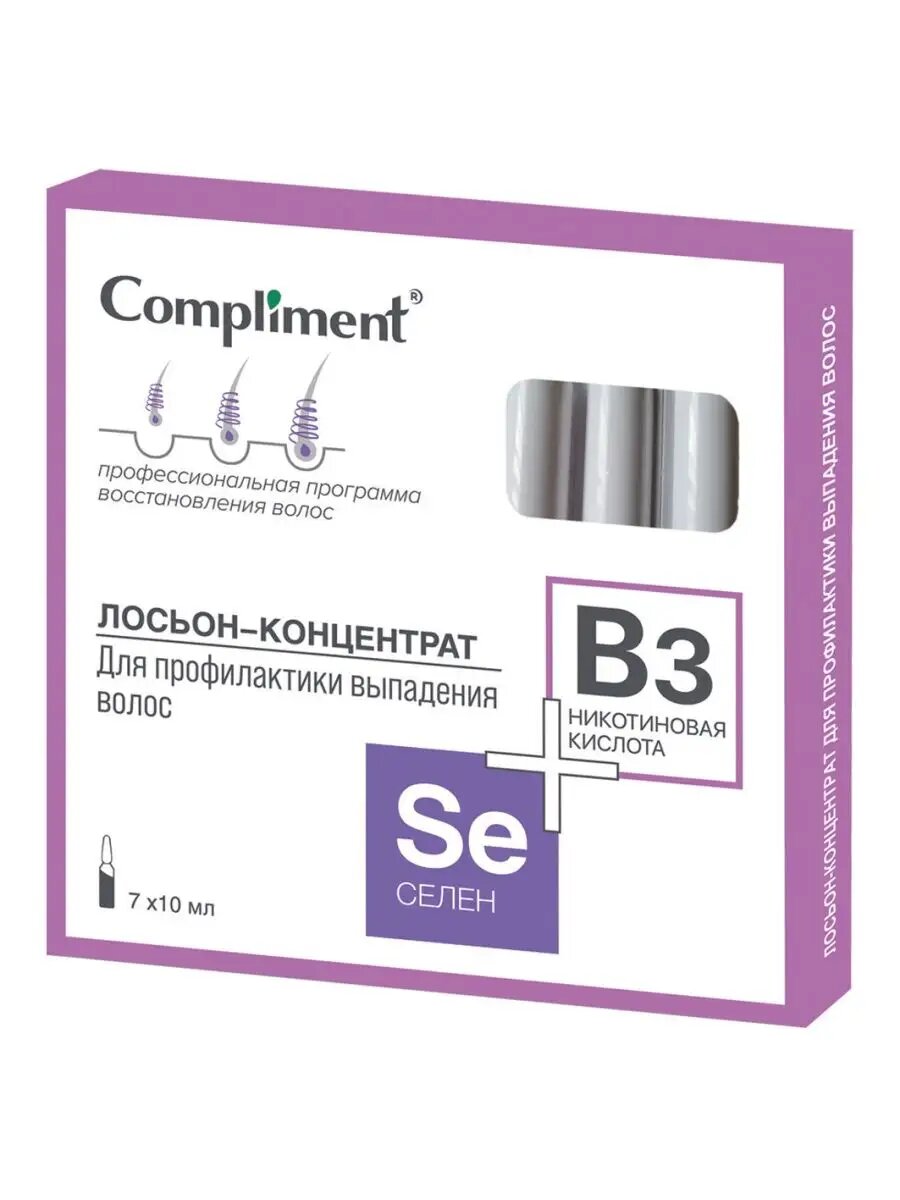 Купить Compliment СЕЛЕН+ никотиновая кислота Лосьон-концентрат для профилактики выпадения волос, 7 ампул по 10мл