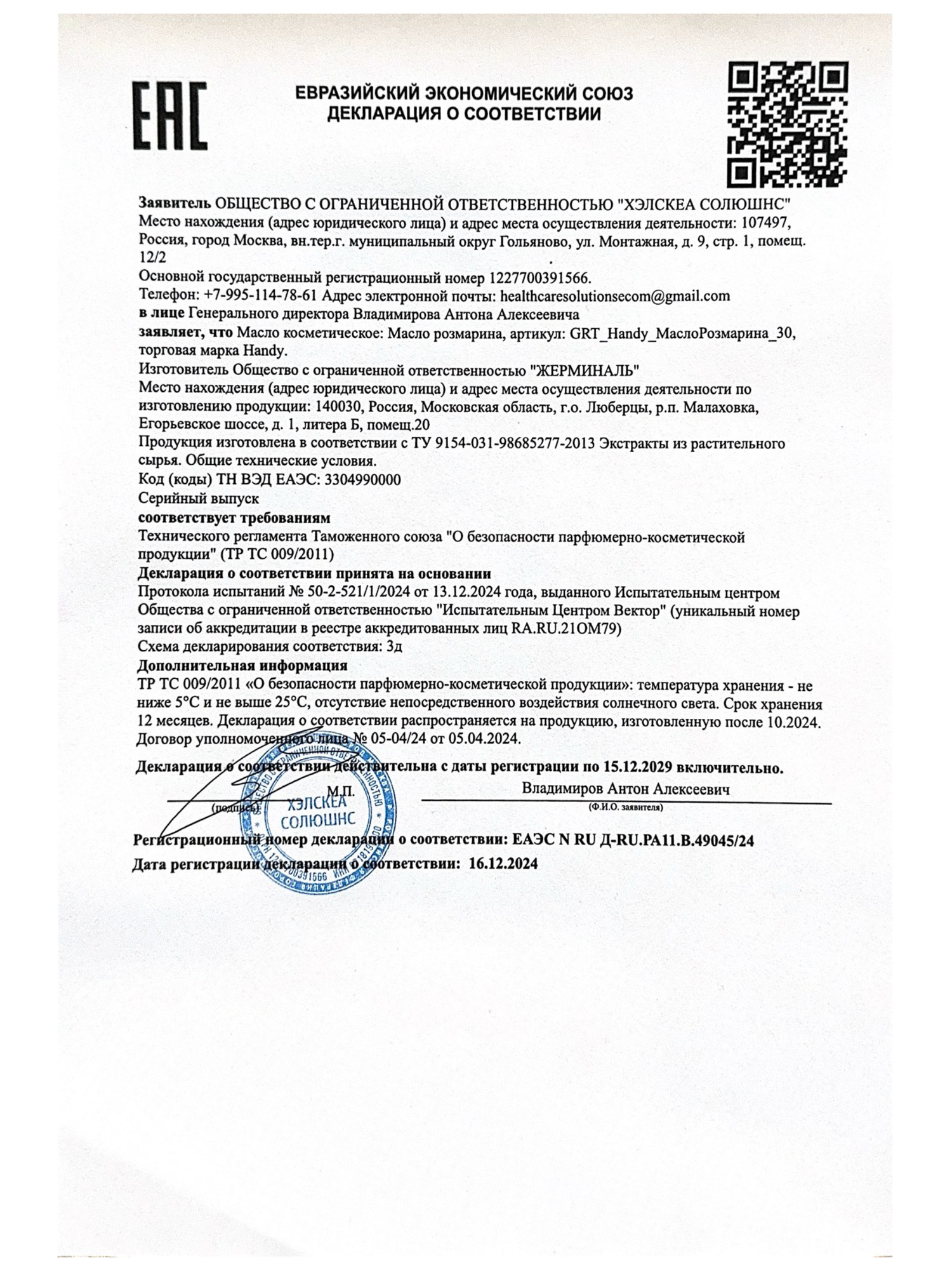 Купить Масло розмарина для роста волос, ресниц, бровей и для бороды Handy