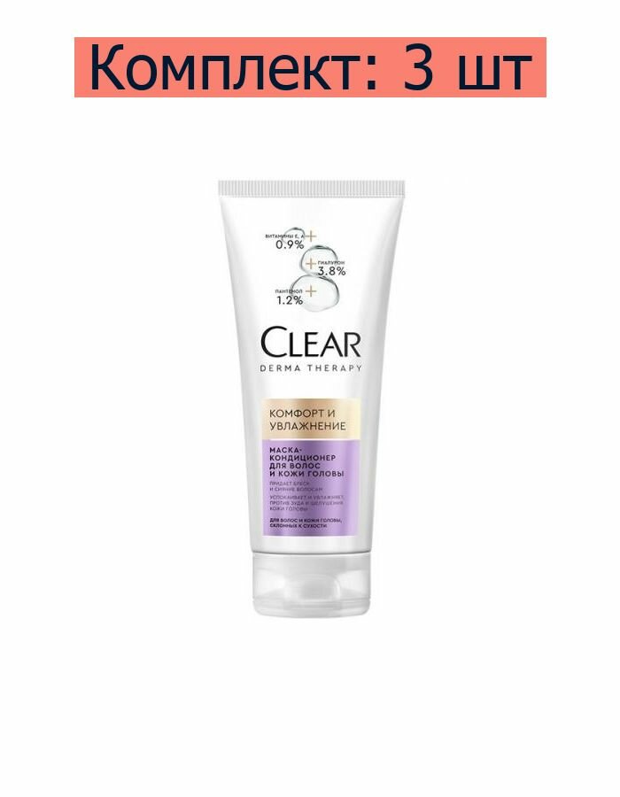 Clear Маска-кондиционер Derma Therapy Комфорт и увлажнение для волос и кожи головы, склонных к сухости, 200 мл, 3 шт интересное: