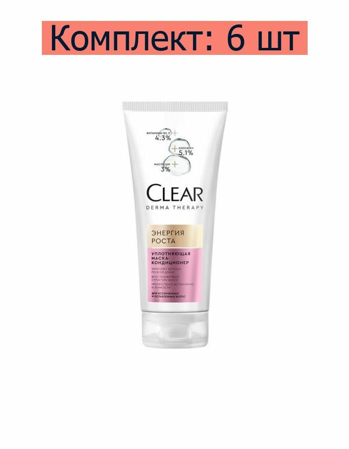 Clear Маска-кондиционер Derma Therapy Энергия роста уплотняющая для истонченных и ослабленных волос, 200 мл, 6 шт интересное: