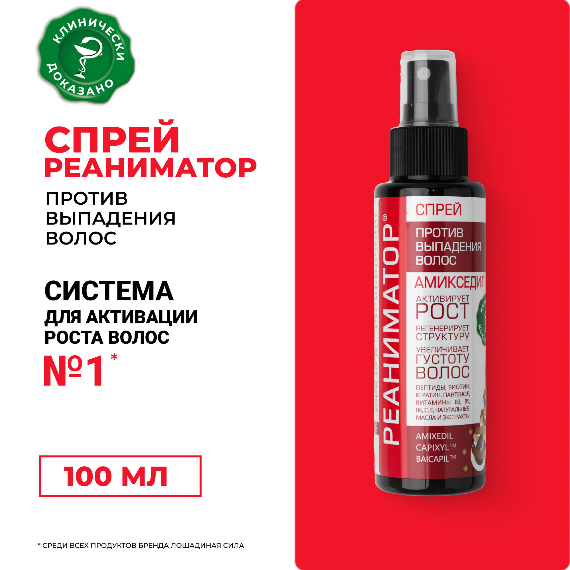 4 шт. Спрей Реаниматор Лошадиная сила укрепляющий от выпадения и для роста волос, 100 мл