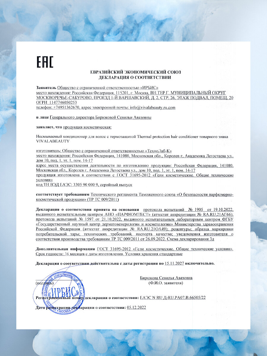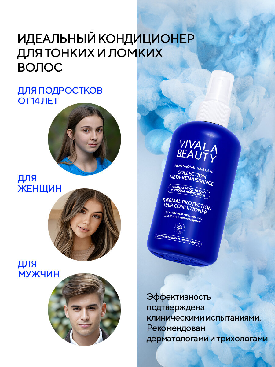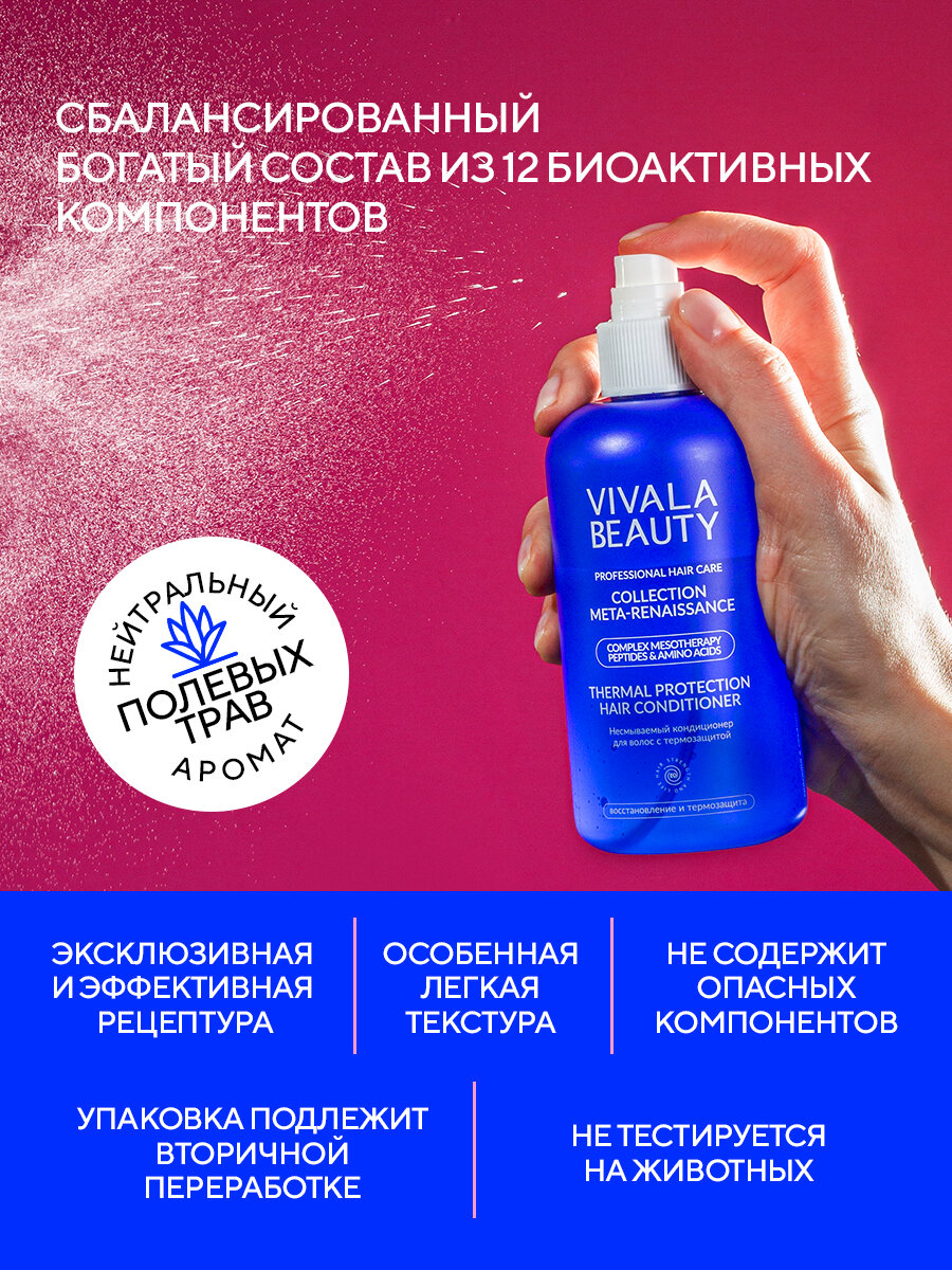 VIVALABEAUTY Несмываемый кондиционер для волос с термозащитой, 250 мл. интересное: