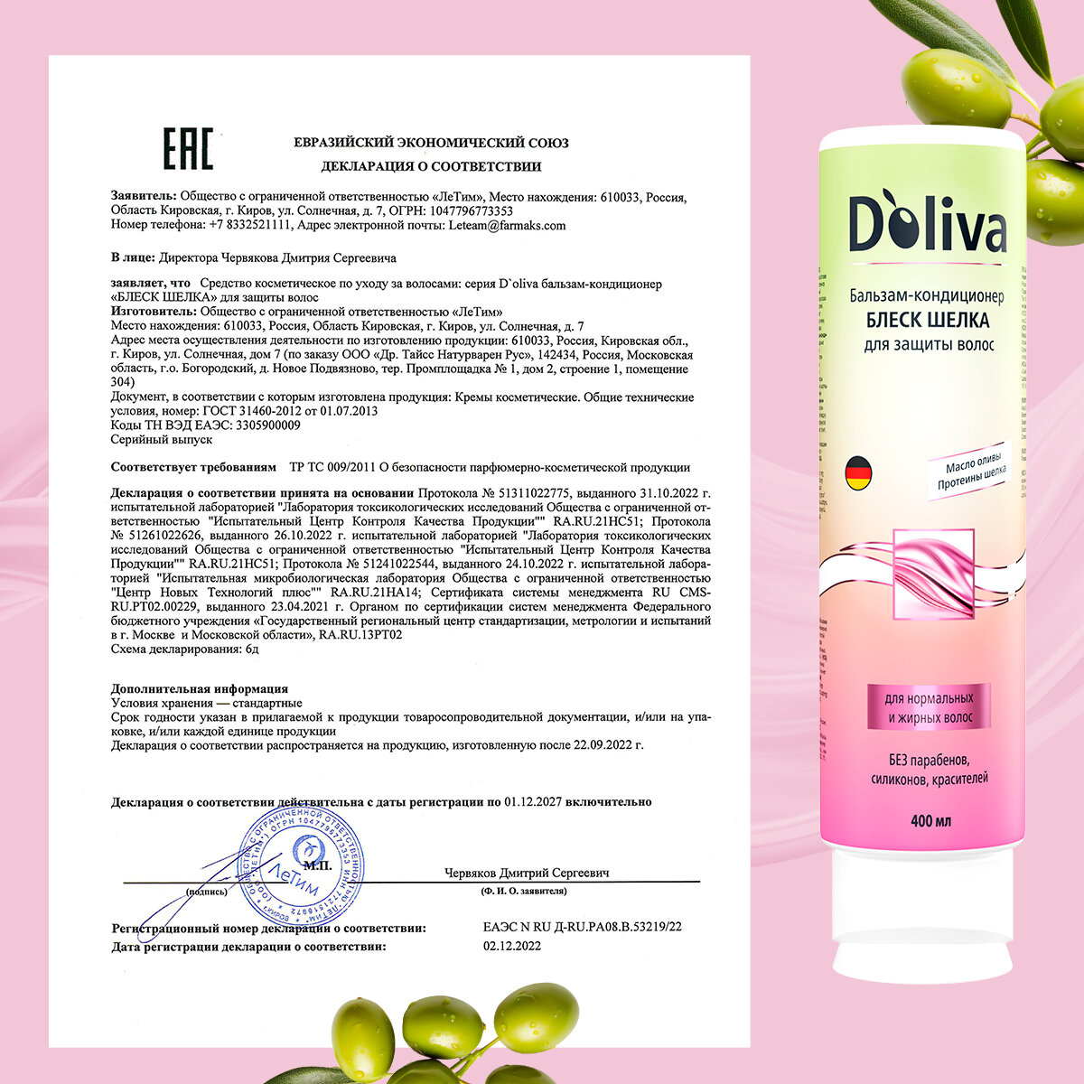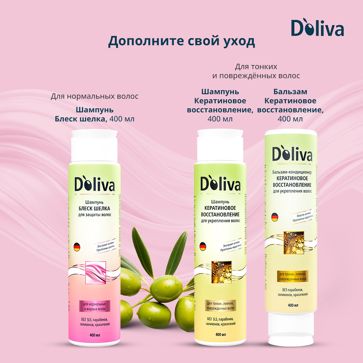 Бальзам-кондиционер для волос Doliva «Блеск шелка», женский, 400 мл интересное: