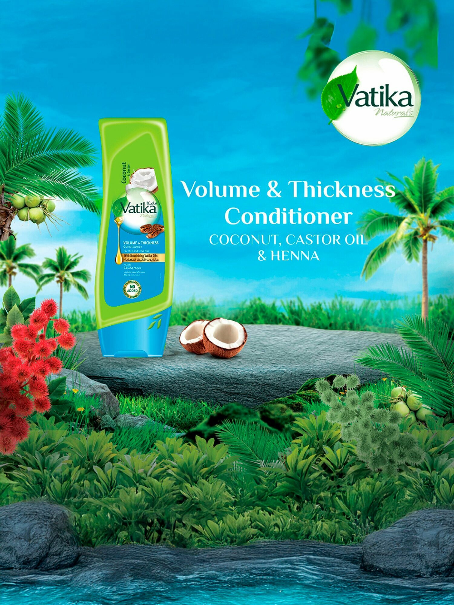 Купить Кондиционер для волос Dabur Vatika Coconut And Castor, объем и толщина для тонких волос, Кокос И Касторовое Масло, 200 мл