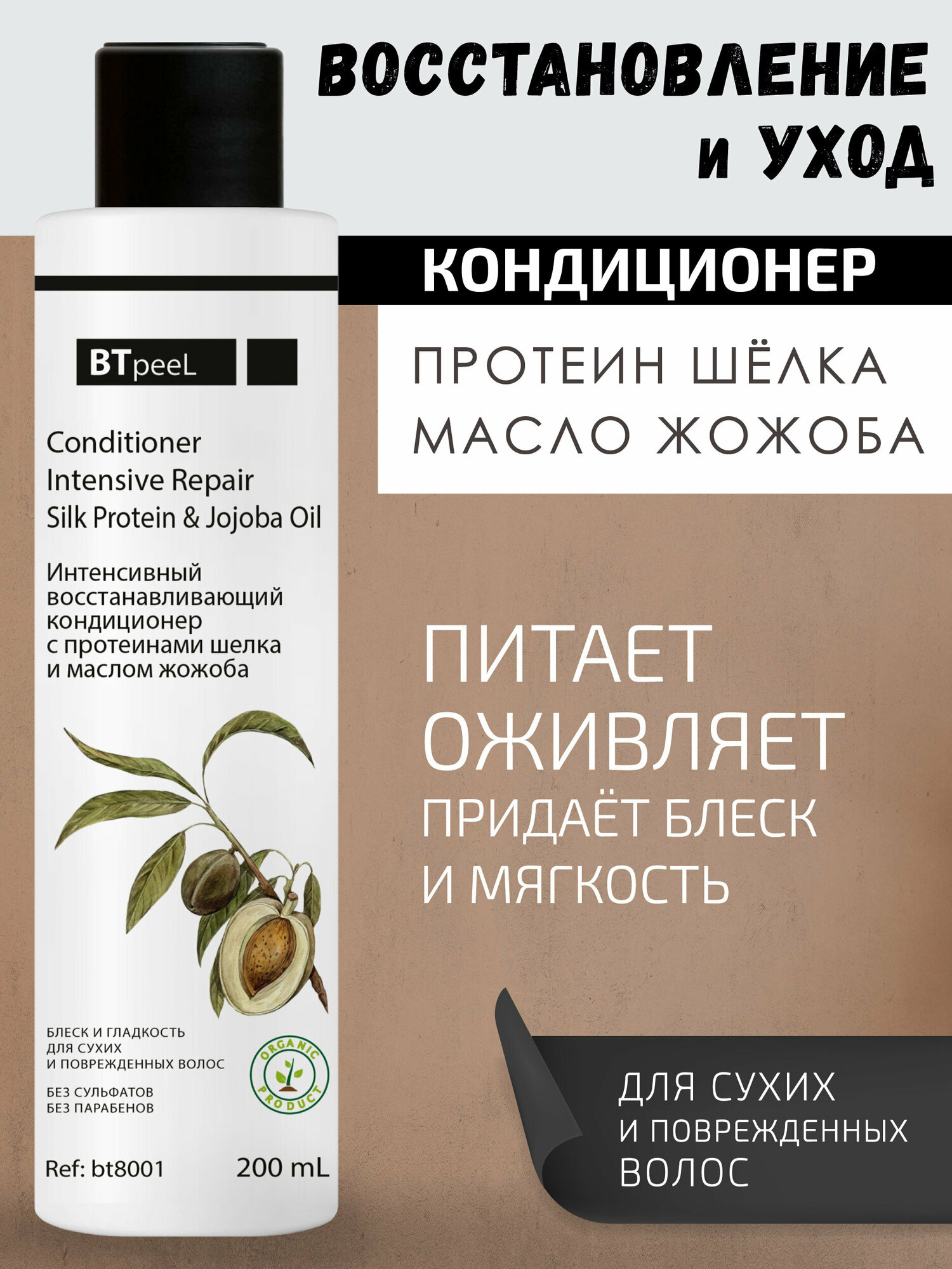 Купить Кондиционер для поврежденных волос интенсивный восстанавливающий с протеинами шелка и маслом жожоба BTpeeL, 200 мл