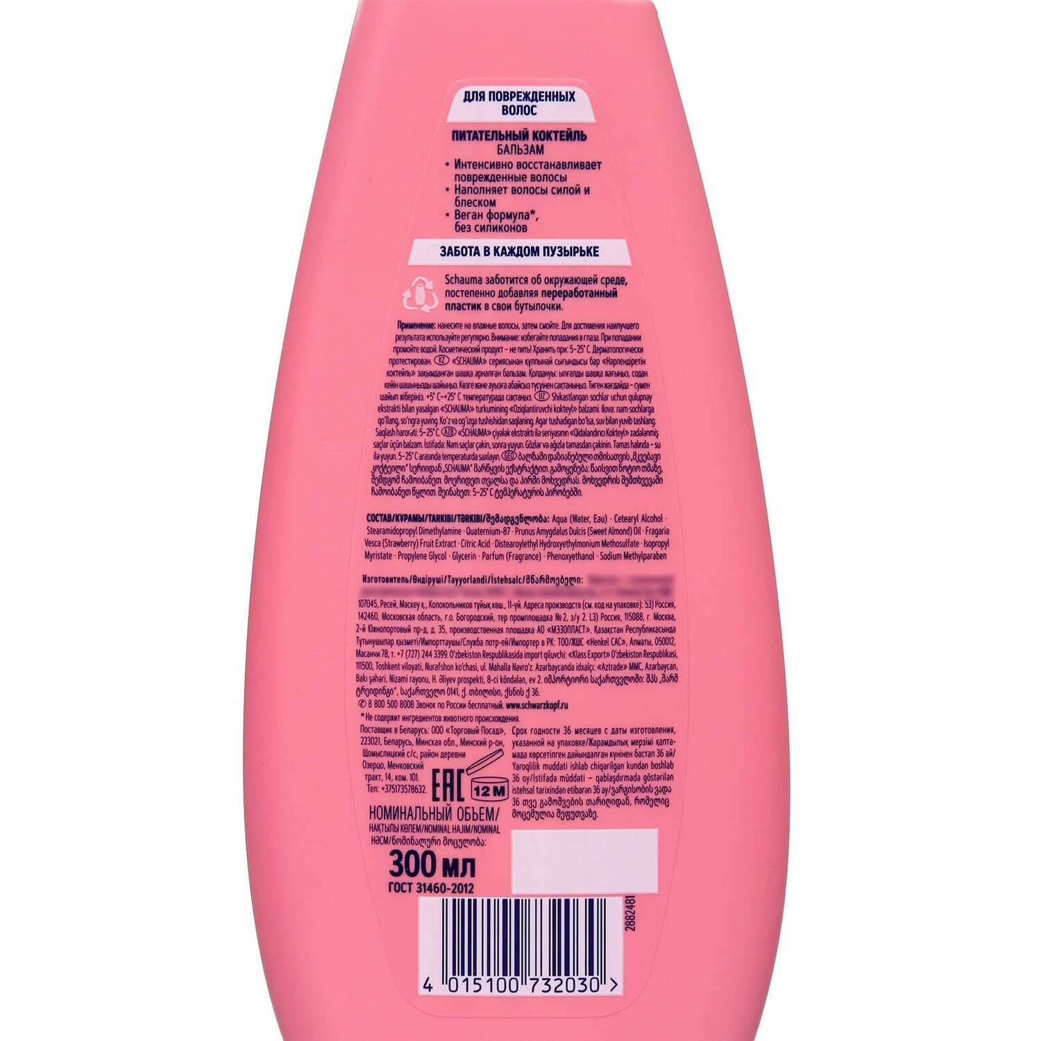 Schauma Бальзам Питательный коктейль, для поврежденных волос, с экстрактом клубники, 300 мл
