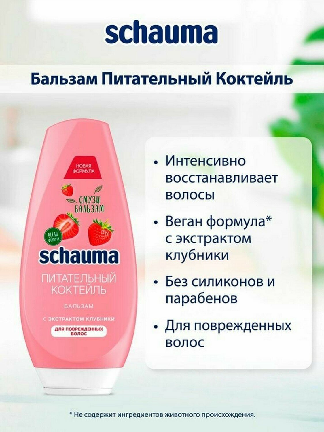 Schauma Бальзам Питательный коктейль, для поврежденных волос, с экстрактом клубники, 300 мл