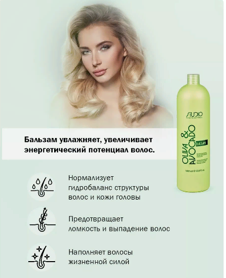 Бальзам для волос увлажняющий с маслами авокадо и оливы Studio Professoinal 1000 мл