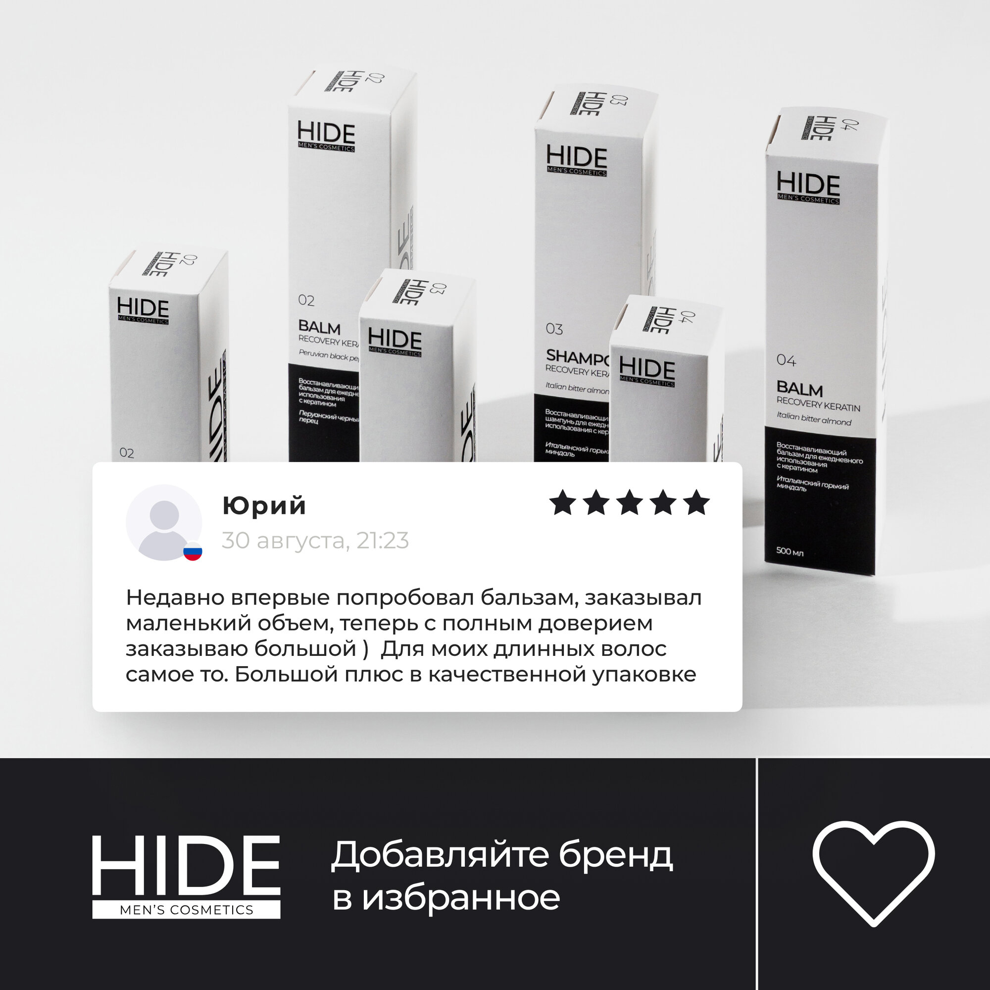 HIDE Восстанавливающий бальзам "Итальянский горький миндаль" с кератином для ежедневного использования, 500 мл интересное: