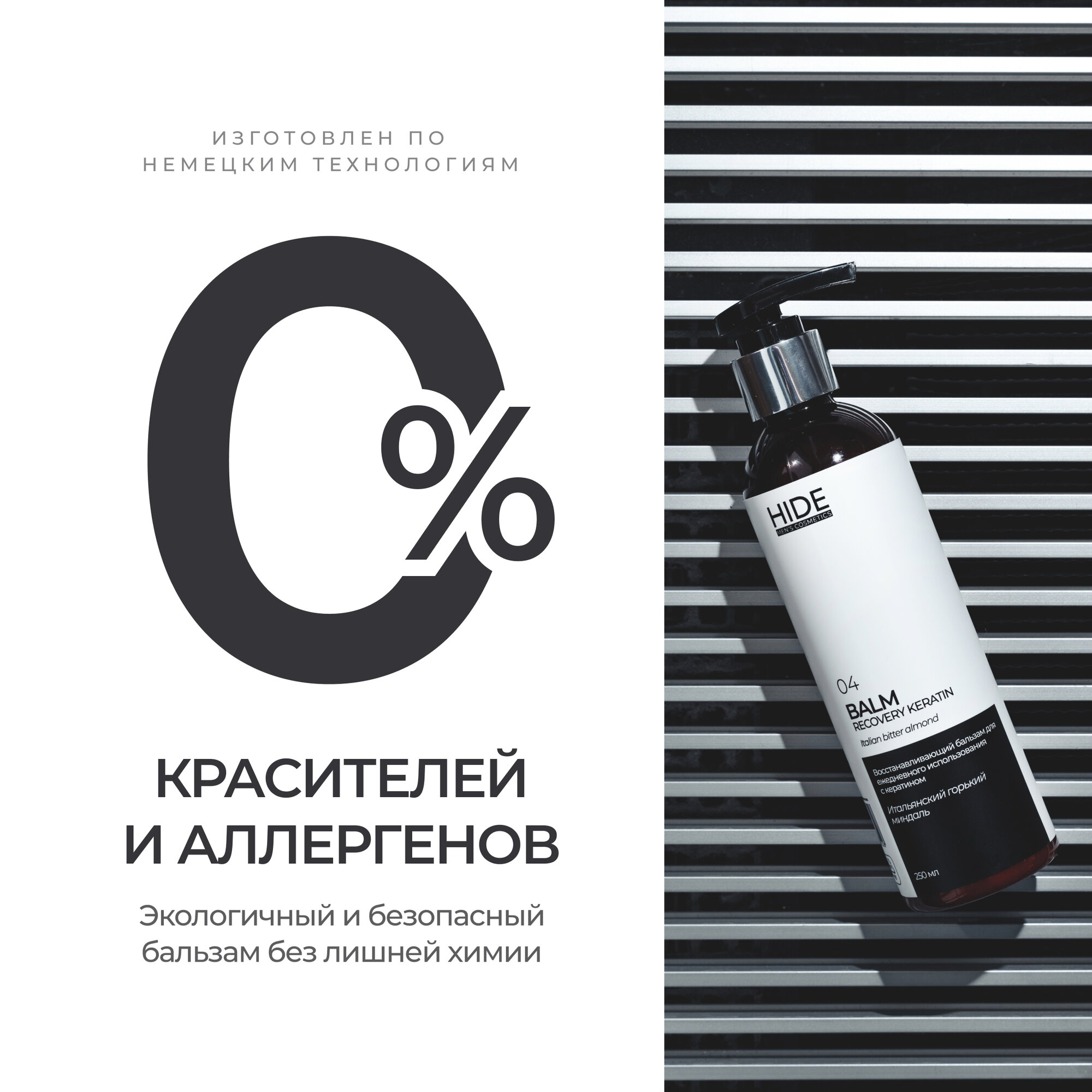 HIDE Восстанавливающий бальзам "Итальянский горький миндаль" с кератином для ежедневного использования, 250 мл