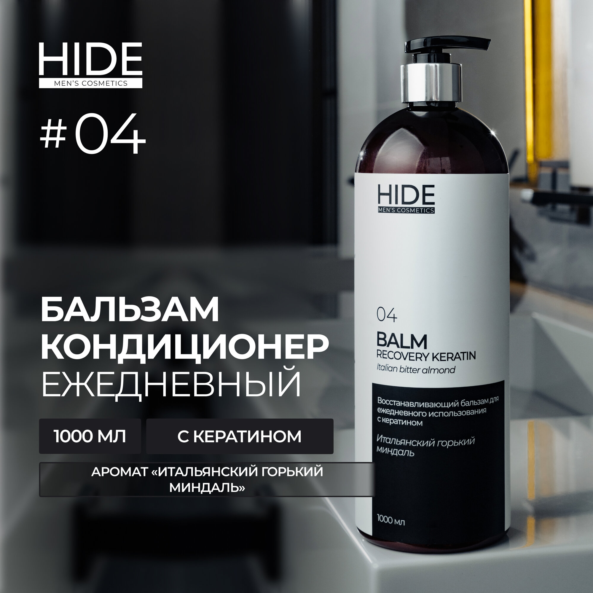 Купить HIDE Восстанавливающий бальзам "Итальянский горький миндаль" с кератином для ежедневного использования, 1000 мл
