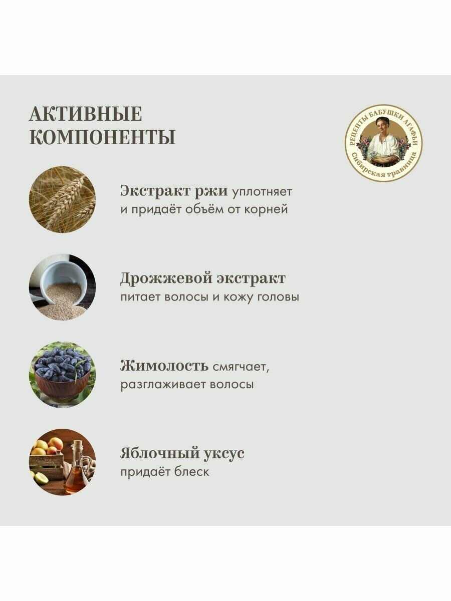 Рецепты бабушки Агафьи Сибирская Травница Бальзам для тонких и ослабленных волос "Объём и сила. Ржаной", 500 мл интересное: