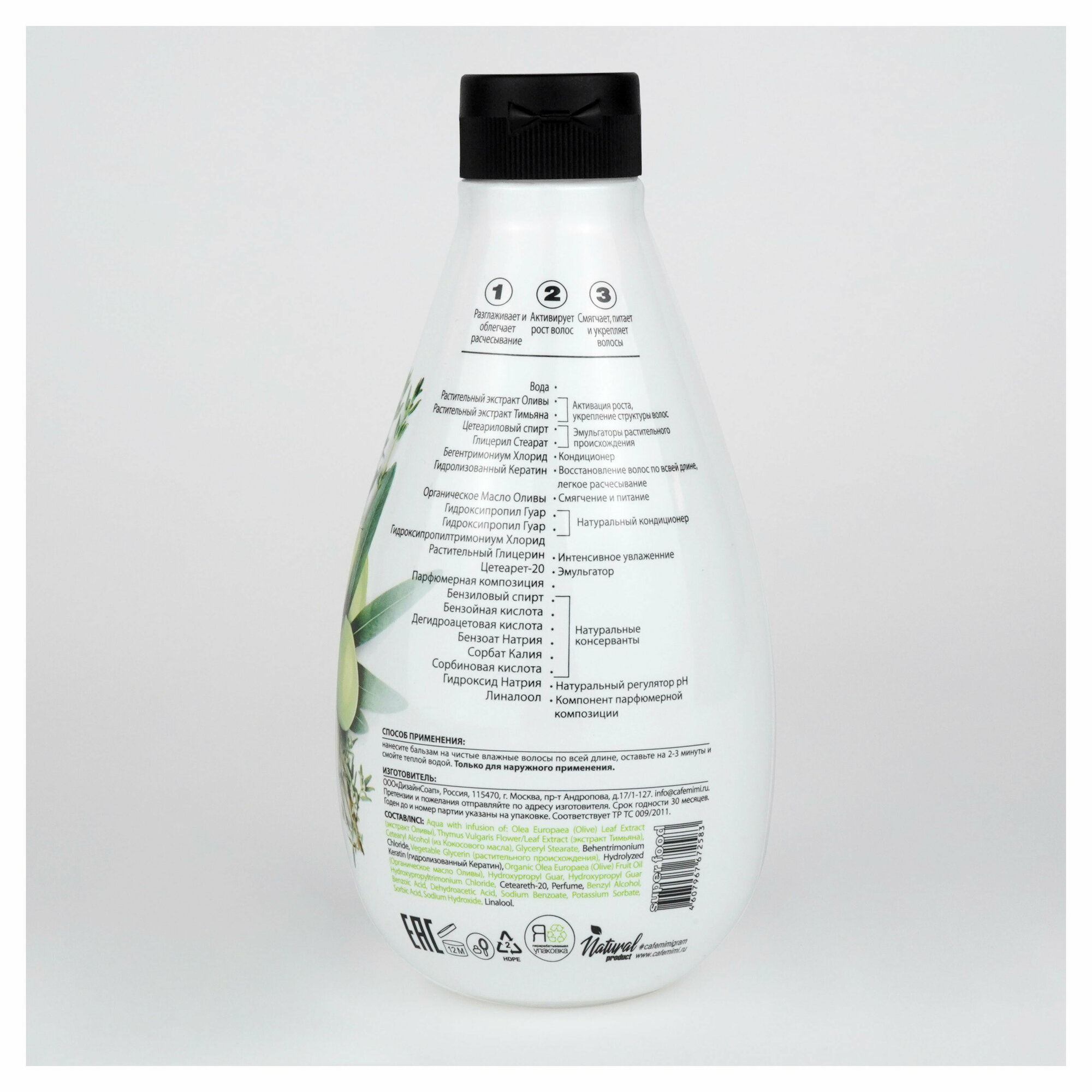 Бальзам для волос Укрепление и рост Олива & Тимьян Cafe mimi 370 мл интересное: