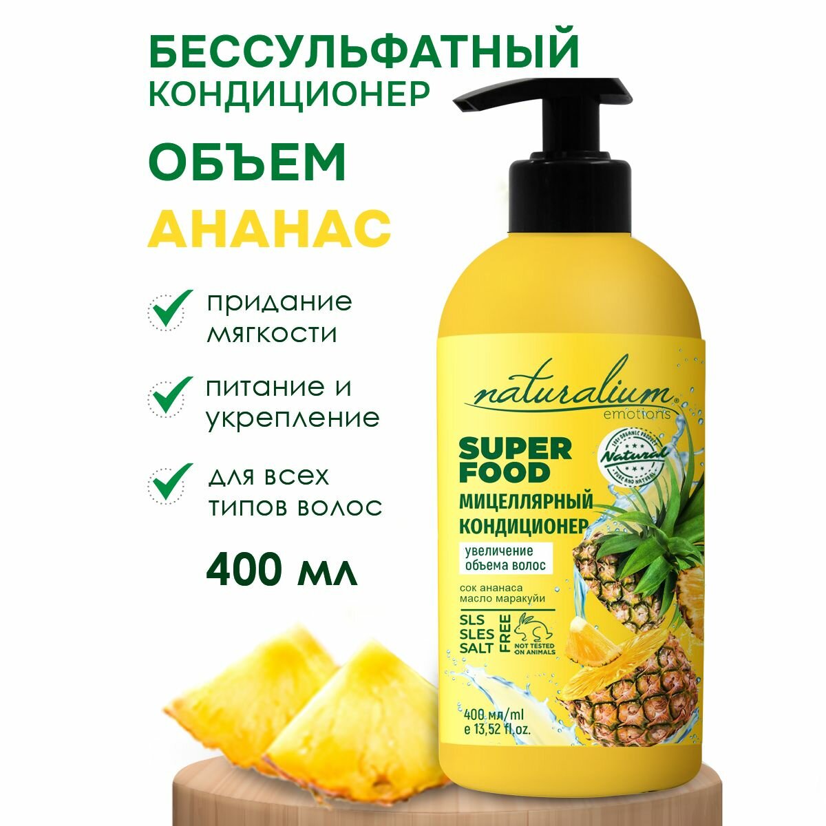 Купить NATURALIUM EMOTIONS Детокс Мицеллярный кондиционер бессульфатный для объема волос "Карибский Ананас" суперфуд, 400 мл