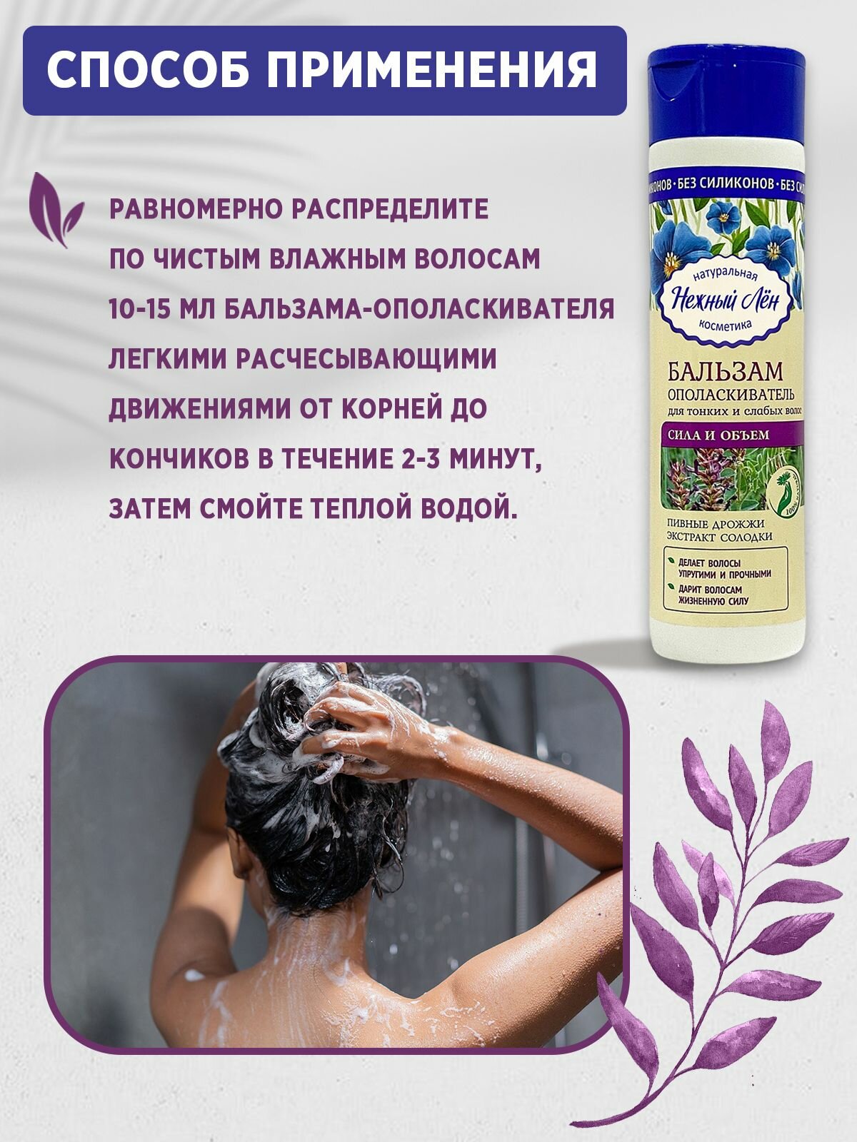 Бальзам-ополаскиватель "Сила и Объём" для тонких и слабых волос 250 мл, Нежный лен интересное: