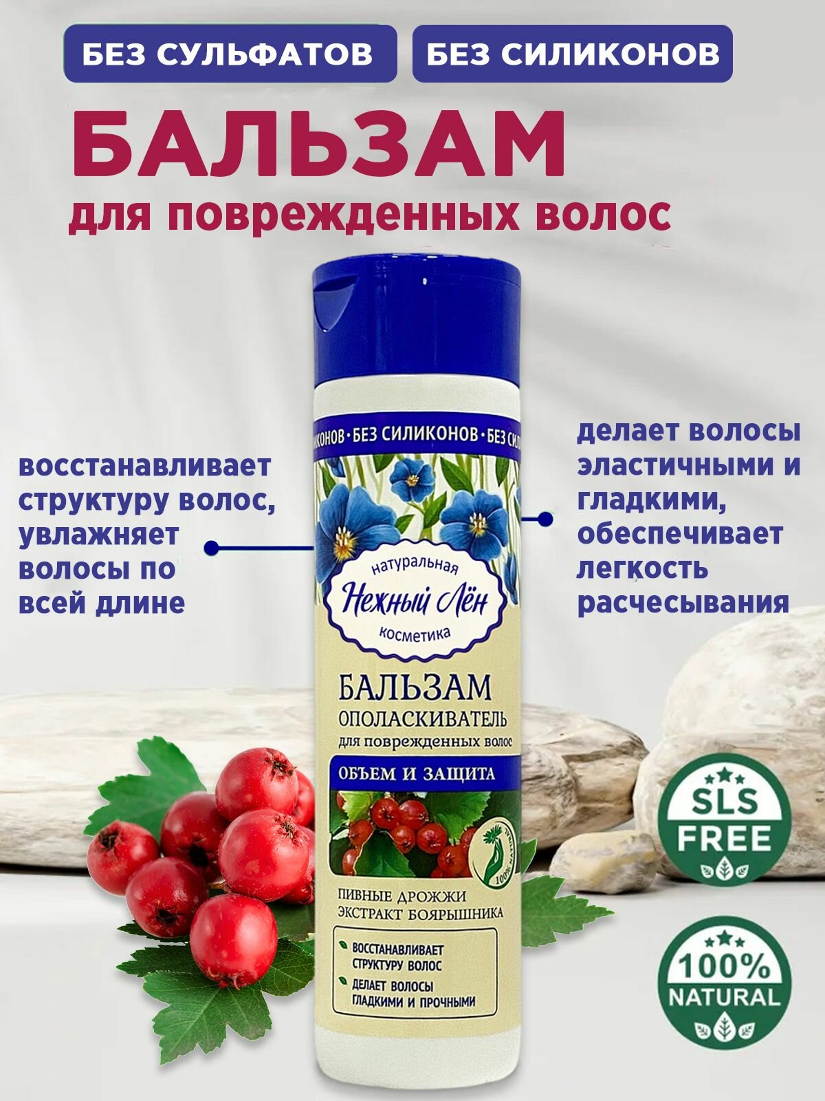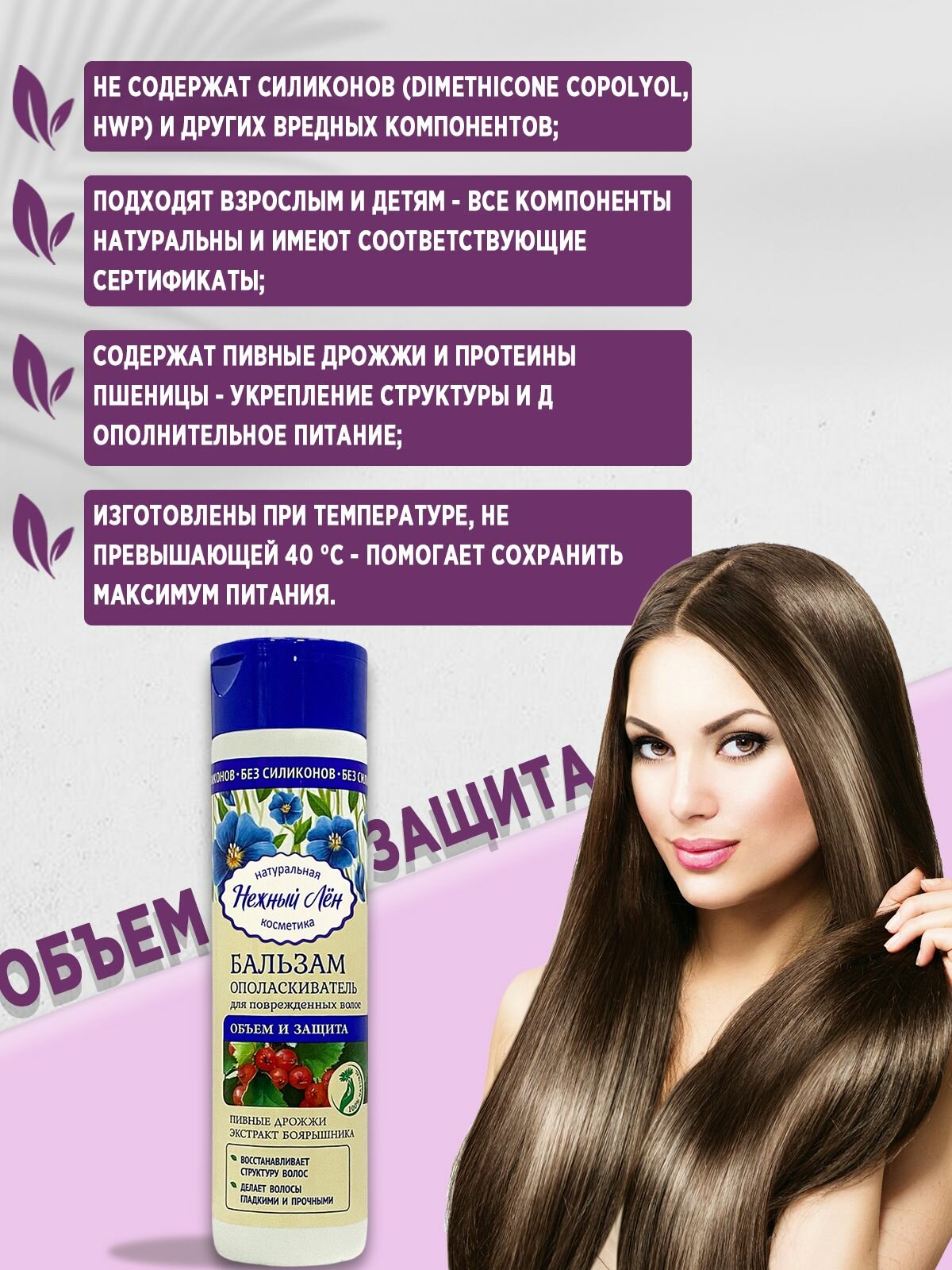 Бальзам-ополаскиватель "Объём и Защита" для повреждённых волос 250 мл, Нежный лен интересное: