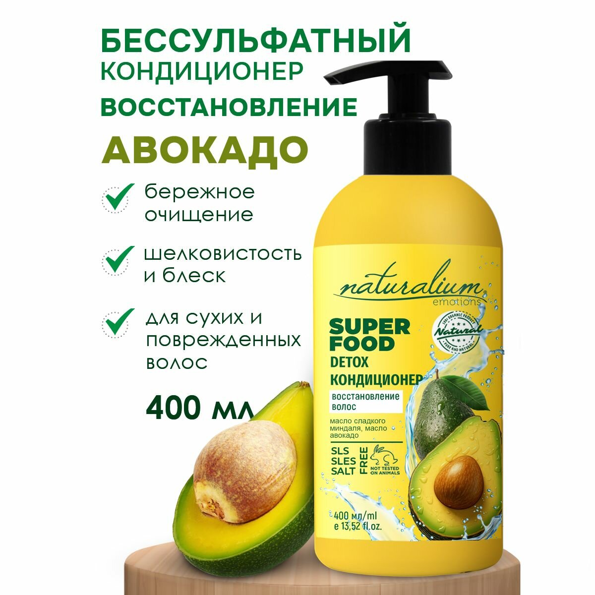 NATURALIUM EMOTIONS Детокс кондиционер бессульфатный для восстановления волос "Амазонский Авокадо" суперфуд, 400 мл интересное: