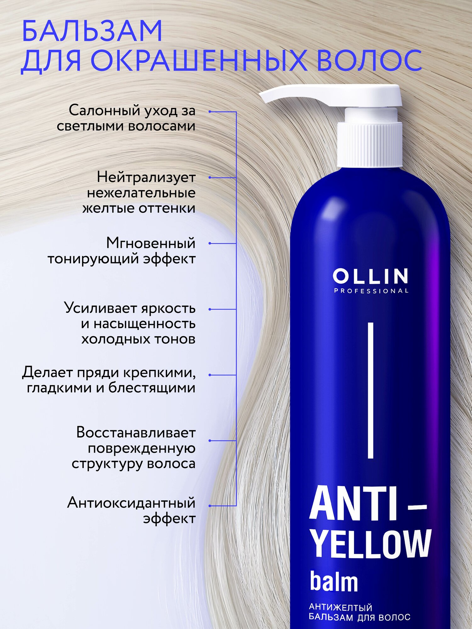 Ollin Professional Антижелтый бальзам для волос Anti-Yellow Balm, 250 мл