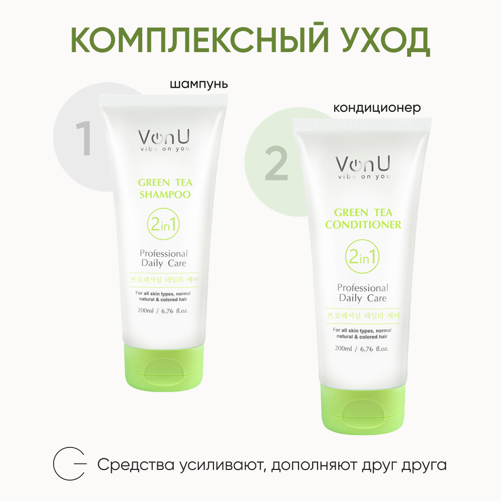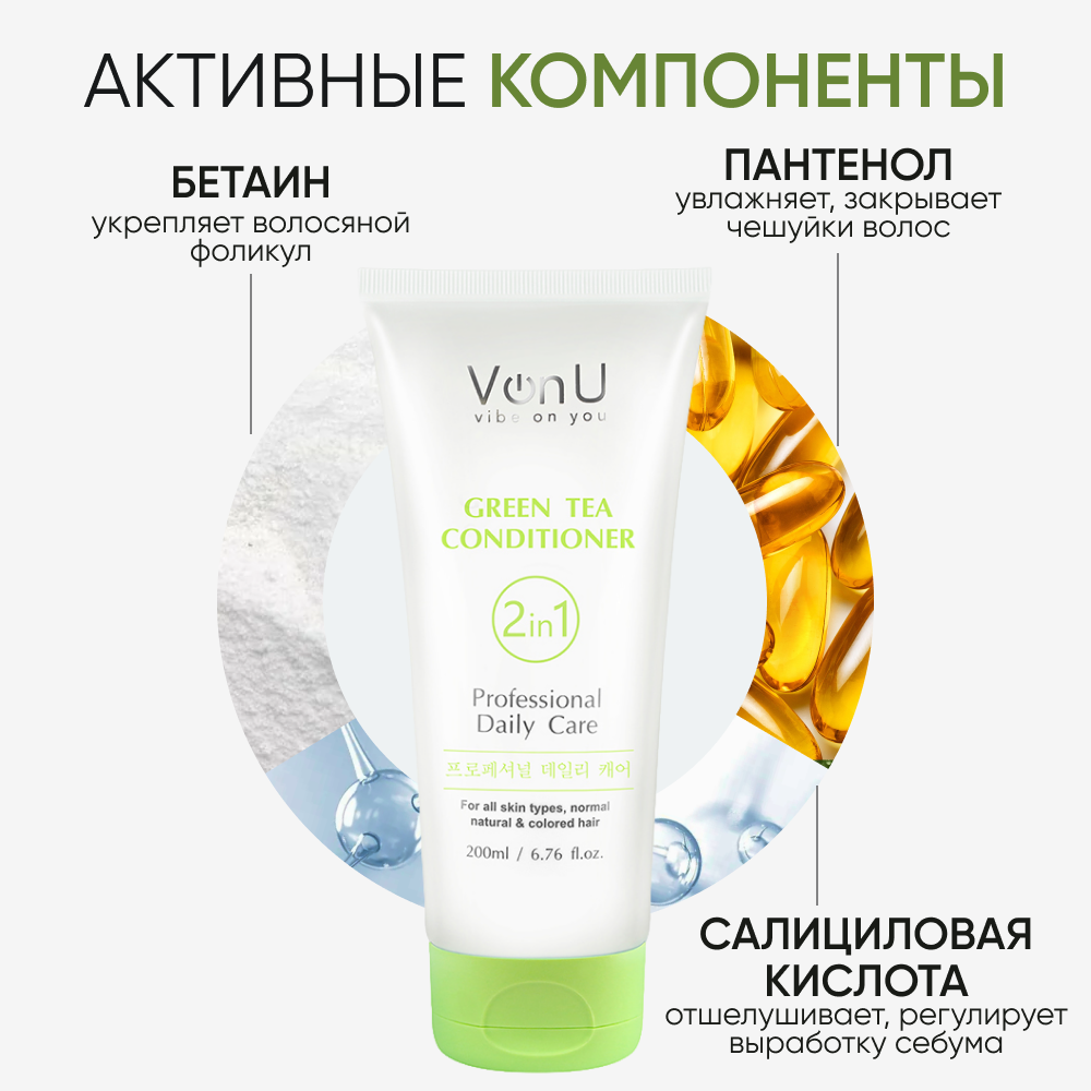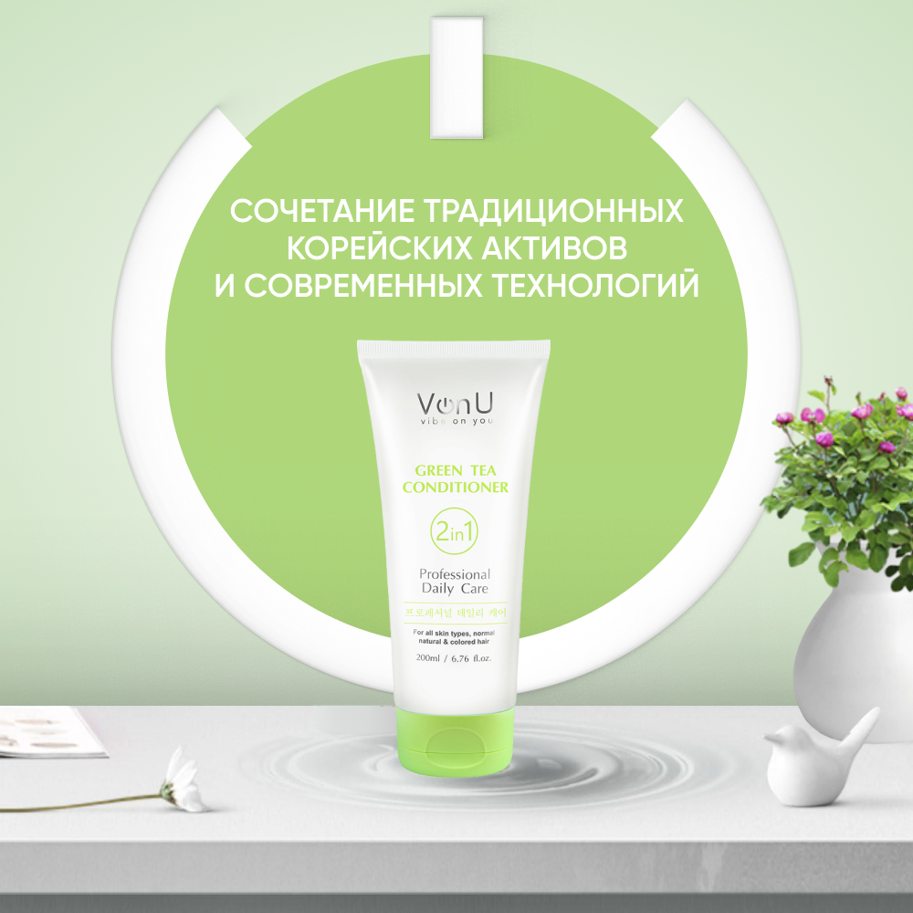 Кондиционер для волос увлажняющий с зеленым чаем для всей семьи Von-U Green Tea Conditioner 200 мл интересное: