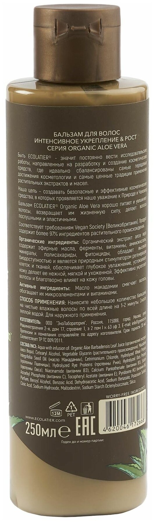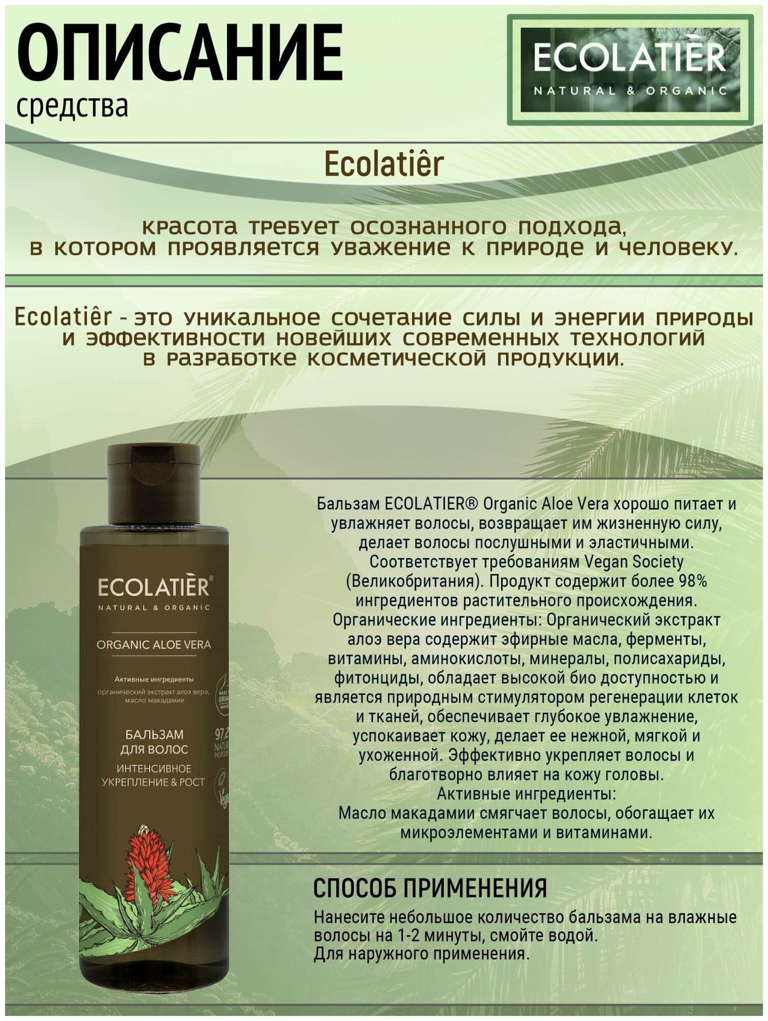 Ecolatier GREEN Бальзам для волос Интенсивное укрепление & Рост Серия ORGANIC ALOE VERA, 250 мл интересное: