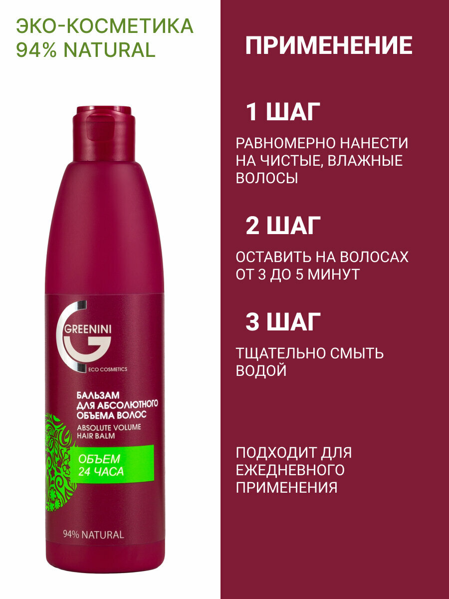 Greenini Бальзам для абсолютного объема волос 300мл интересное: