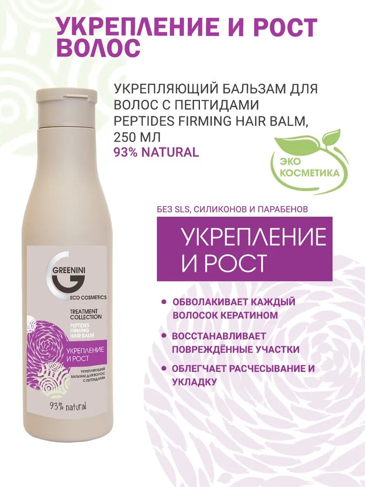 Greenini Укрепляющий бальзам для волос с пептидами серии TREATMENT 250мл интересное: