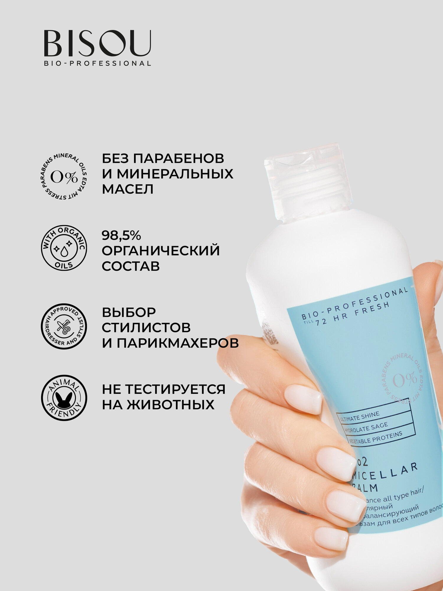 BISOU Мицеллярный бальзам для волос till 72 HR FRESH для всех типов 285 мл интересное:
