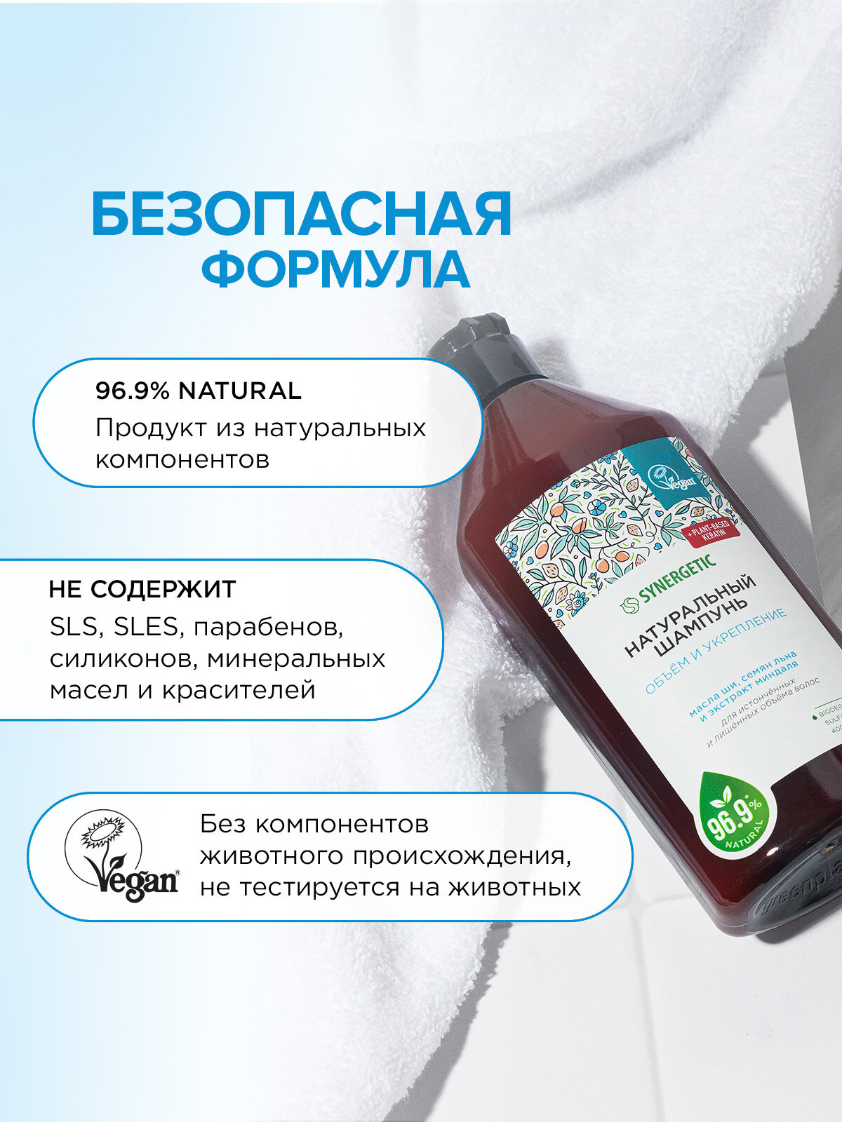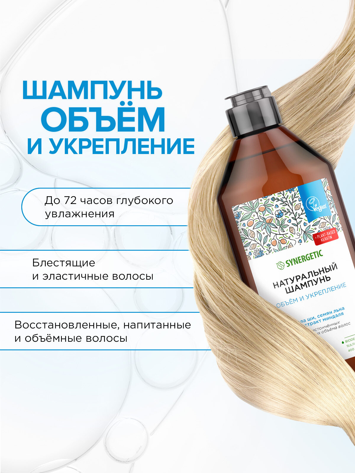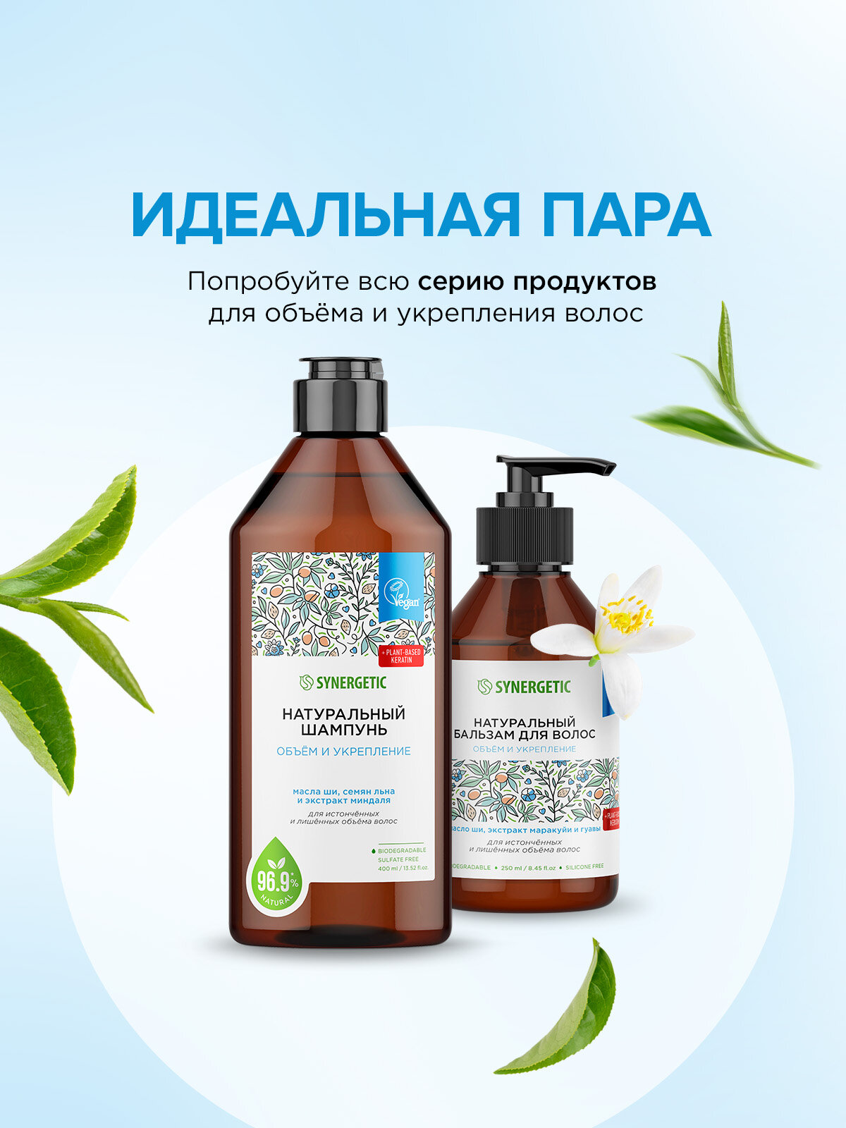 Натуральный бессульфатный шампунь SYNERGETIC Объём и укрепление волос 400 мл интересное: