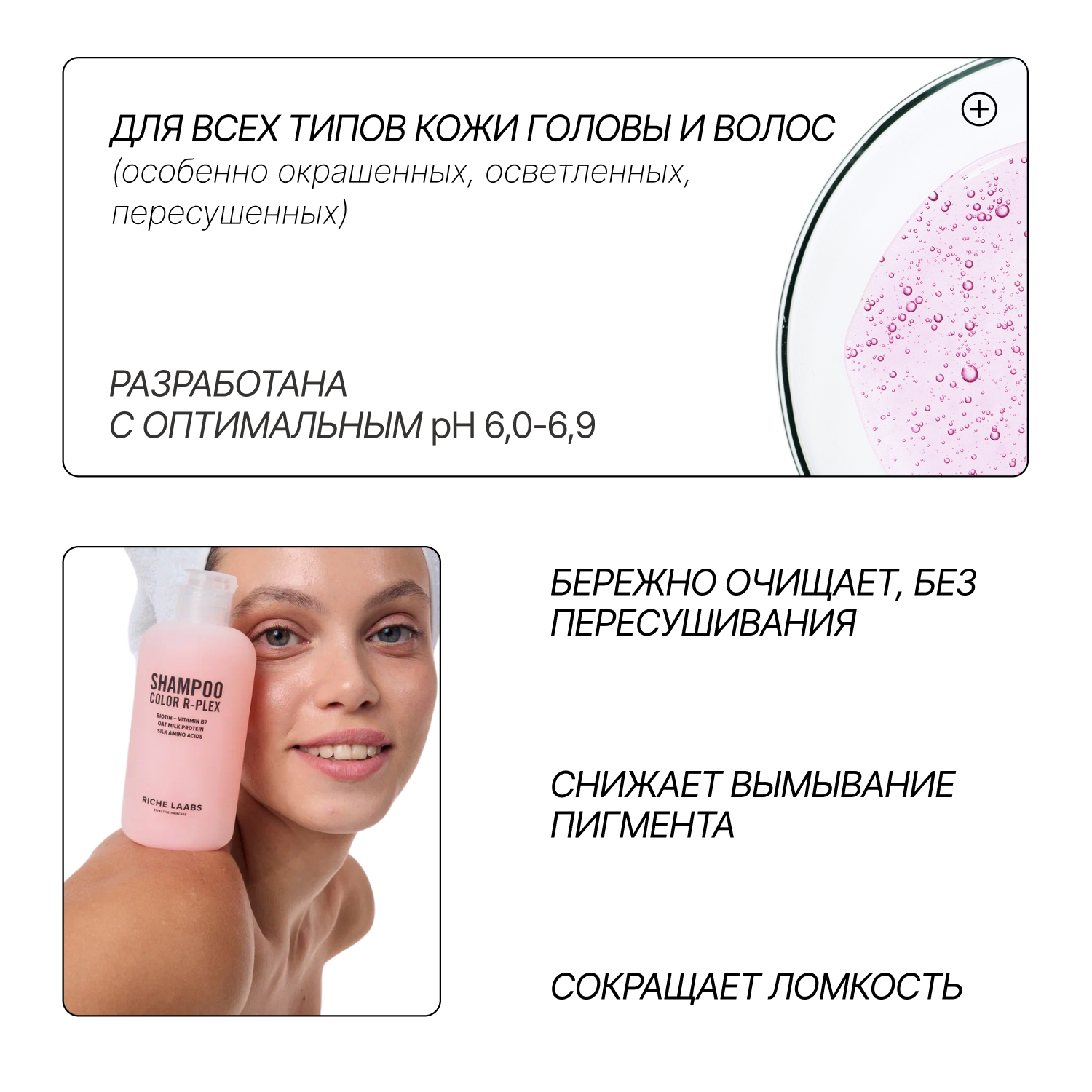 RICHE Мягкоочищающий беcсульфатный шампунь для окрашенных волос с аминокислотами и биотином интересное: