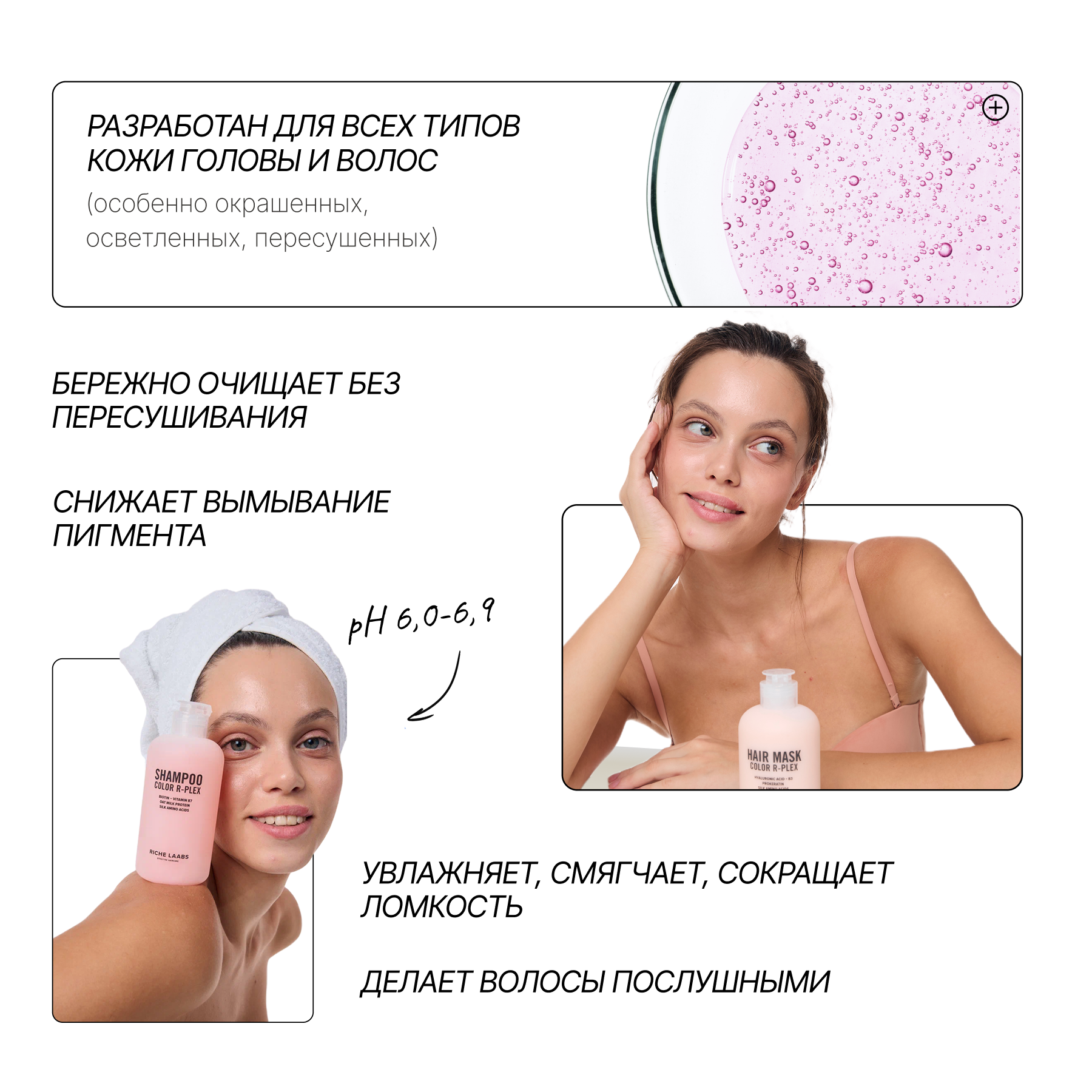 RICHE Набор для окрашенных волос: бессульфатный шампунь + увлажняющая маска + термозащита 21 в 1 интересное: