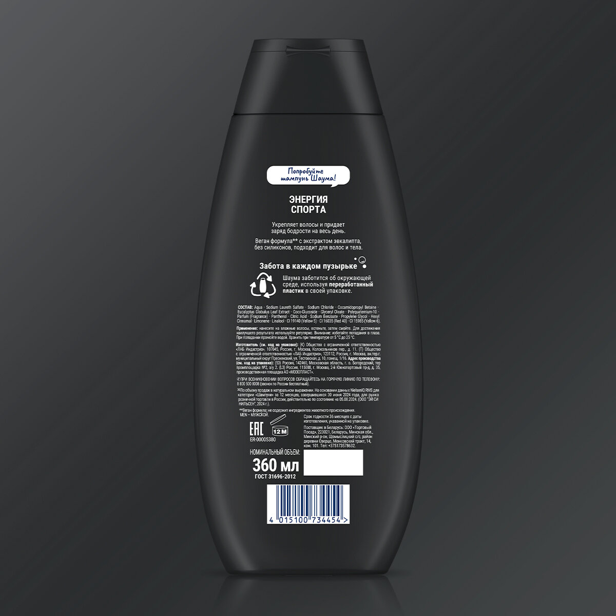 Шаума Шампунь-гель для волос и тела Men 2-в-1, Энергия спорта, экстракт Эвкалипта, 360 мл интересное: