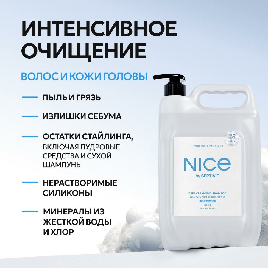 Купить Шампунь профессиональный Nice by Septivit Глубокой Очистки Pro Line 5 л, с дозатором