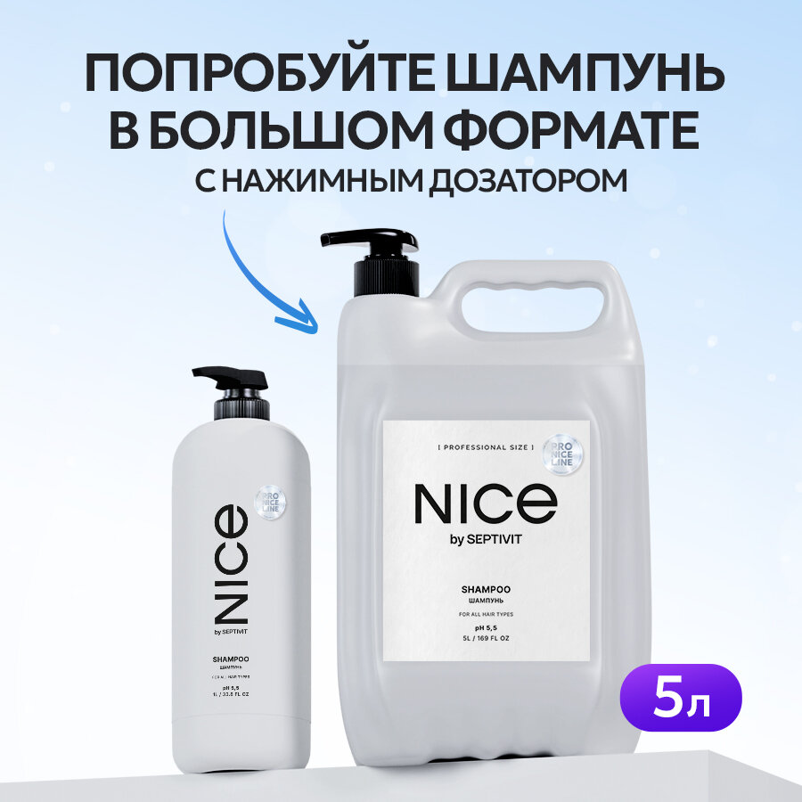 Шампунь профессиональный для волос NICE by SEPTIVIT Pro Line 5 л, с дозатором