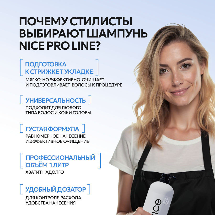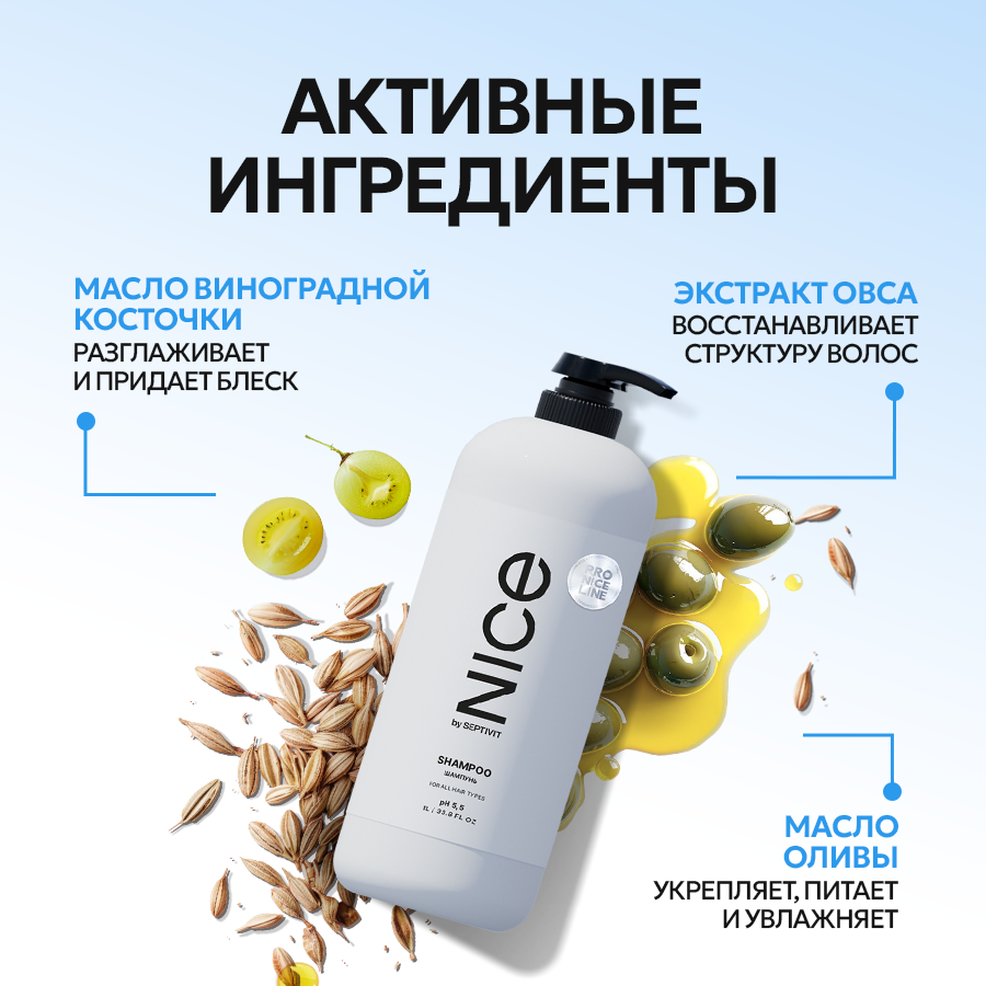 Шампунь профессиональный NICE by Septivit бессульфатный Pro Line 1 л, с дозатором