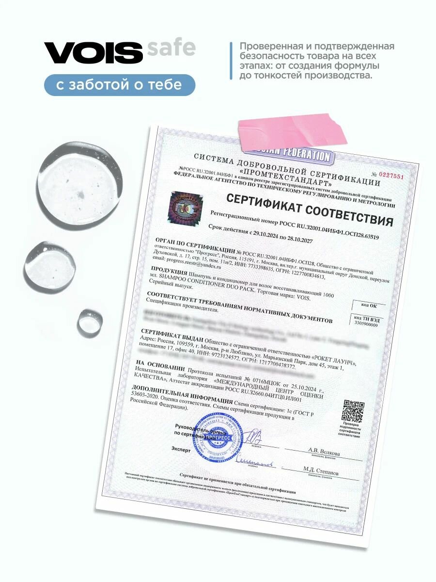 VOIS Шампунь для волос женский и бальзам кондиционер восстанавливающие, 1+1 л интересное: