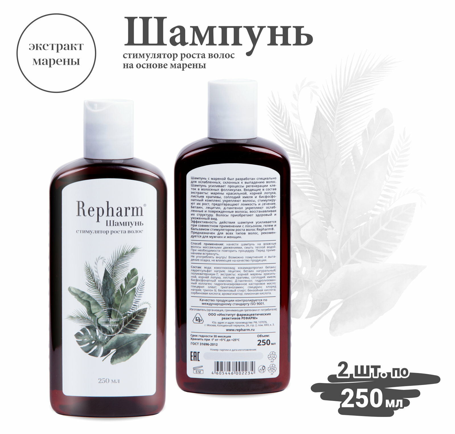 Шампунь-стимулятор роста волос «рефарм» на основе экстракта марены, 250 мл - 2 шт интересное: