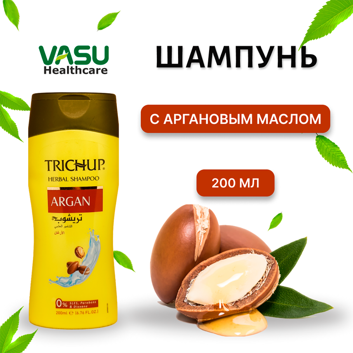 Шампунь для волос Vasu Trichup Herbal Argan на основе трав для вьющихся, тусклых и сухих волос, 400 мл