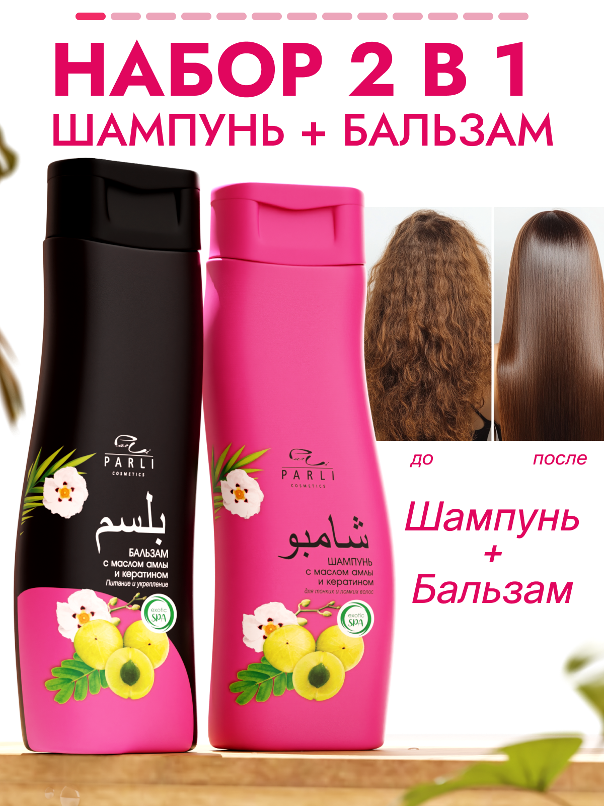 Купить Шампунь и бальзам Parli, для всех типов волос, увлажняющий с натуральным маслом амлы и кератином