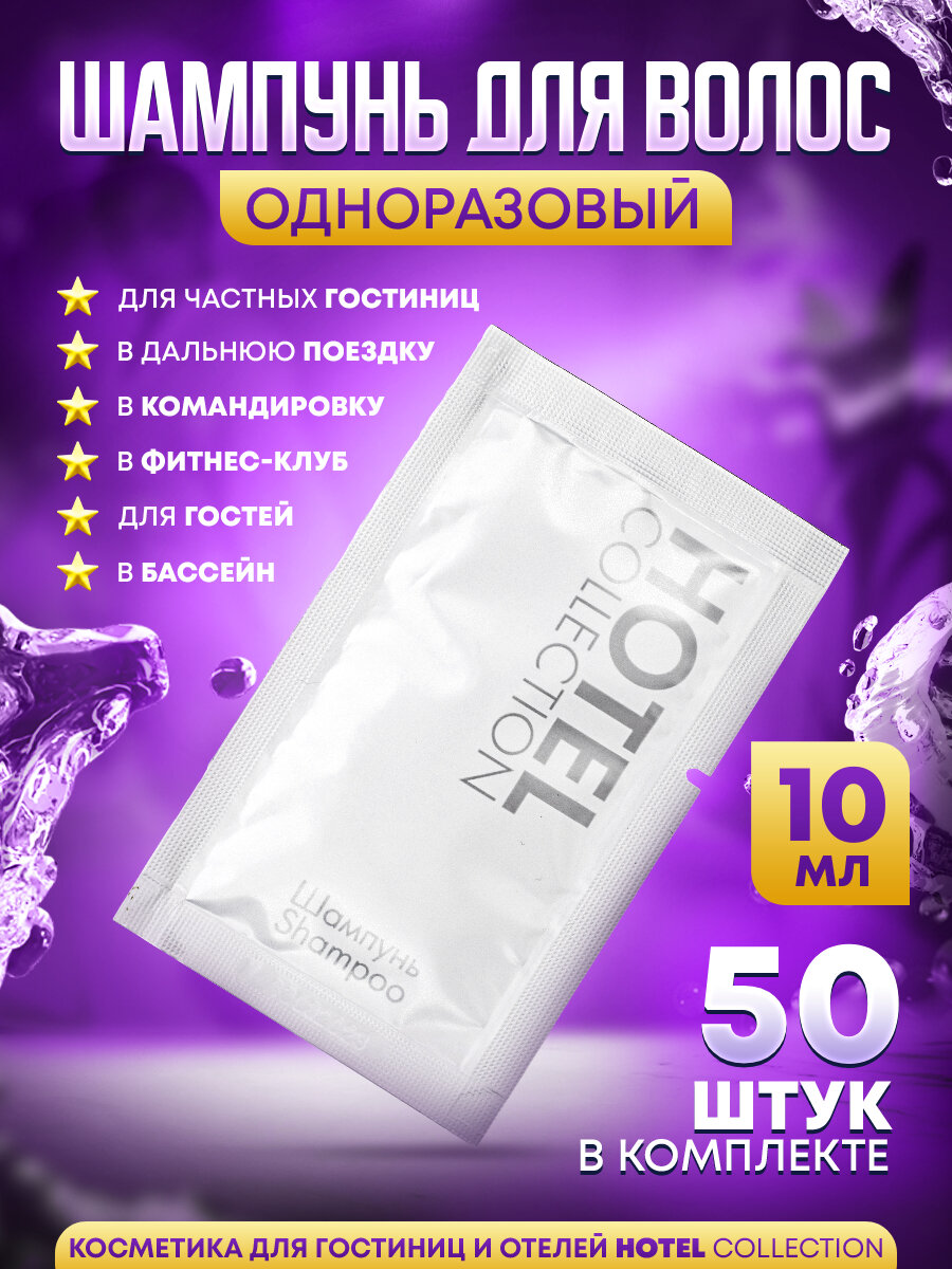 Одноразовый шампунь для волос, в саше 10 мл - 50 штук. Косметика для гостиниц. Hotel Collection
