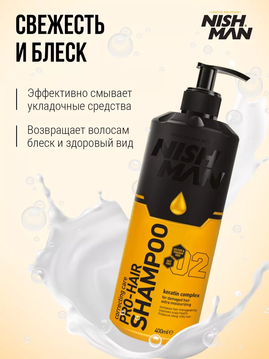 Мужской шампунь для волос с кератиновым комплексом NISHMAN, 400 мл интересное: