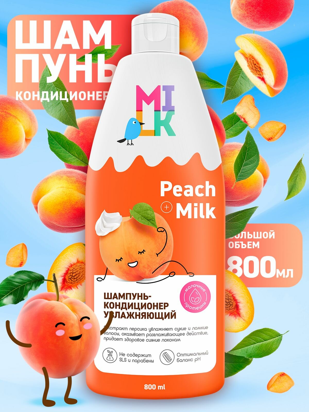 Купить Шампунь-кондиционер Milk, увлажняющий, для всех типов волос, без парабенов и сульфатов, 800 мл