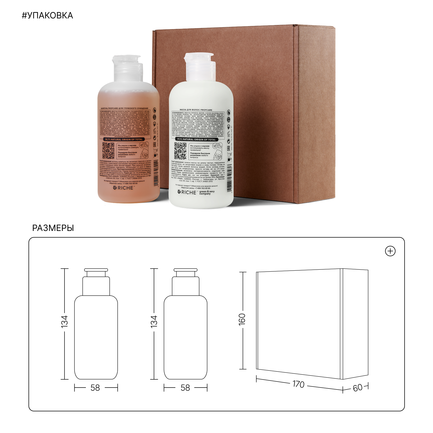 RICHE Набор для волос: глубокоочищающий шампунь + восстанавливающая маска интересное: