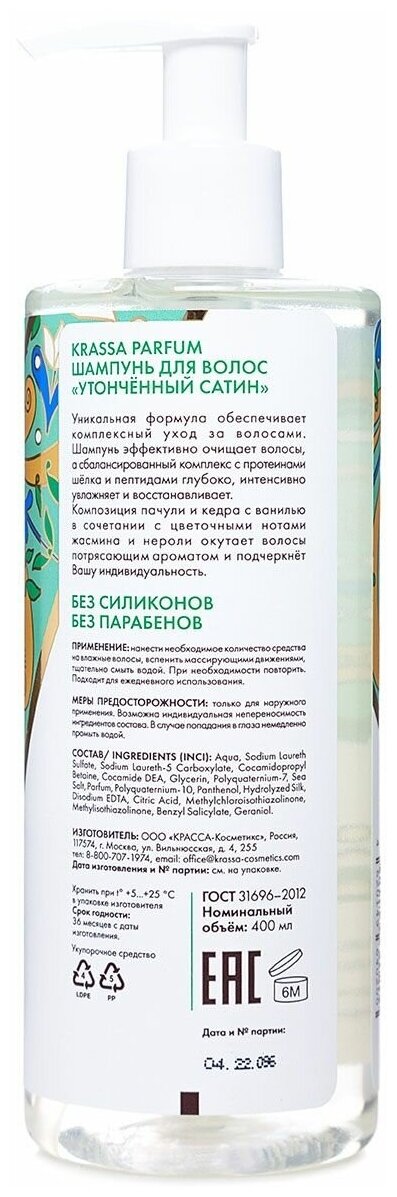 Krassa Parfum Шампунь для волос Утончённый Сатин с протеинами шёлка и пептидами, помпа 400 мл интересное: