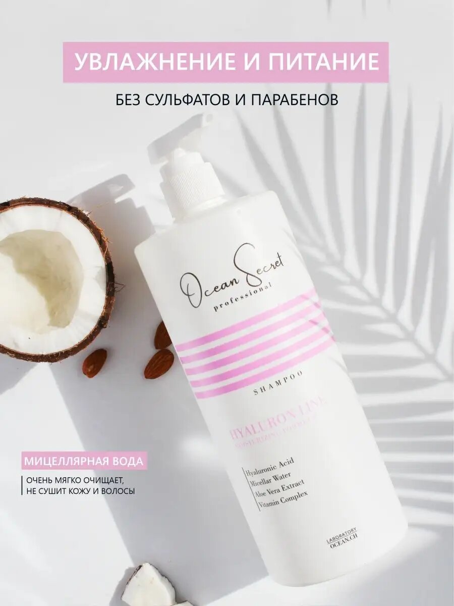 Шампунь Ocean Secret Гиалуроновый, бессульфатный, с дозатором 1000мл интересное: