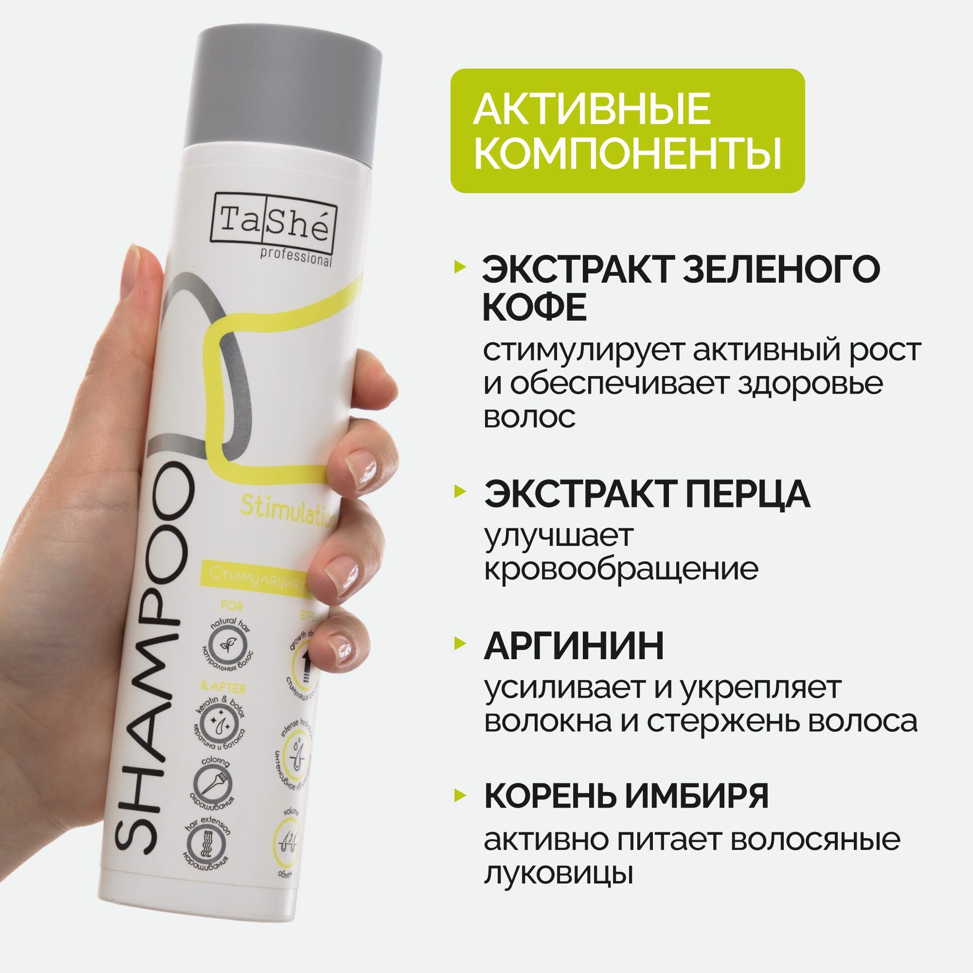 TaShe Шампунь для роста волос, СТИМУЛЯЦИЯ РОСТА для всех типов волос, 300 мл интересное: