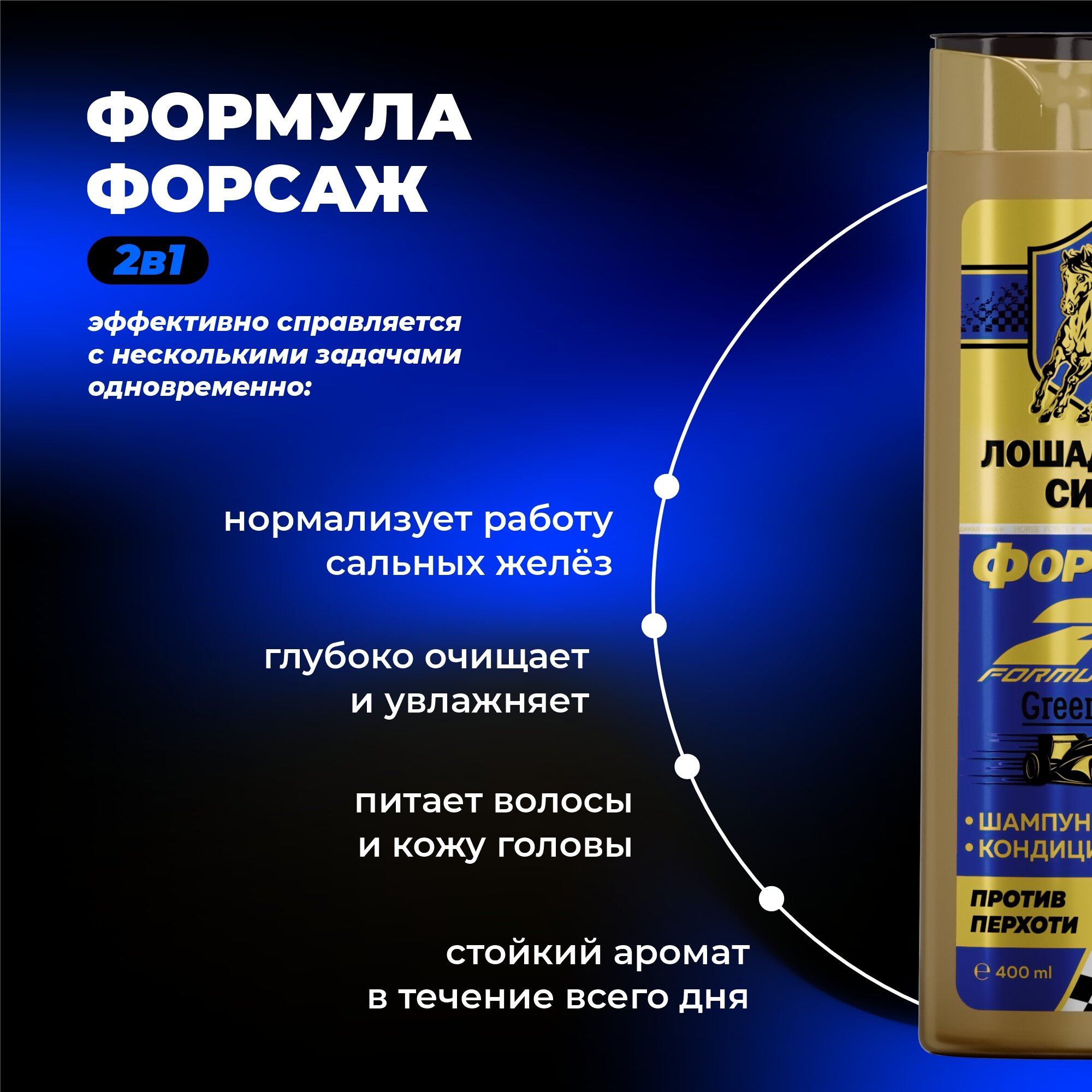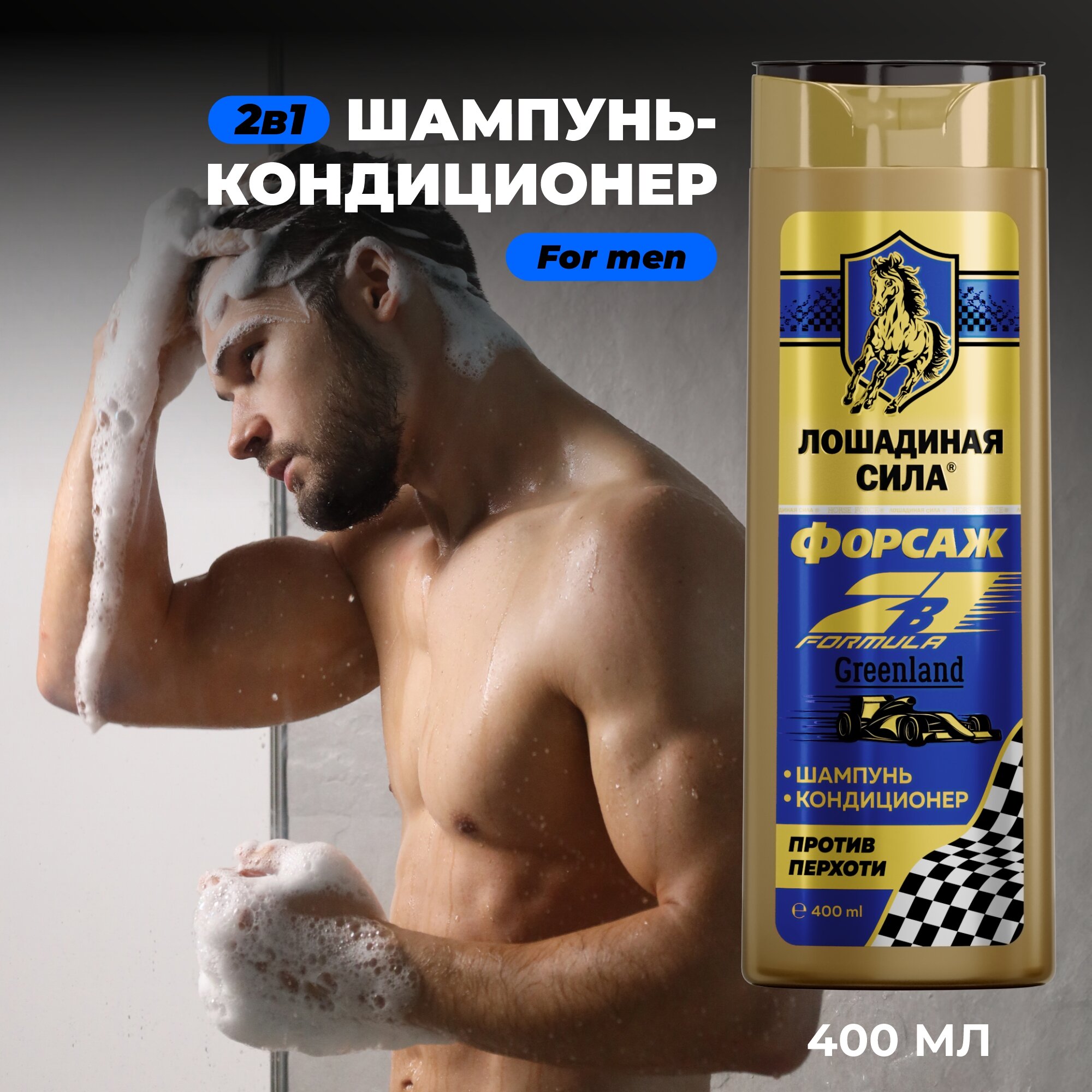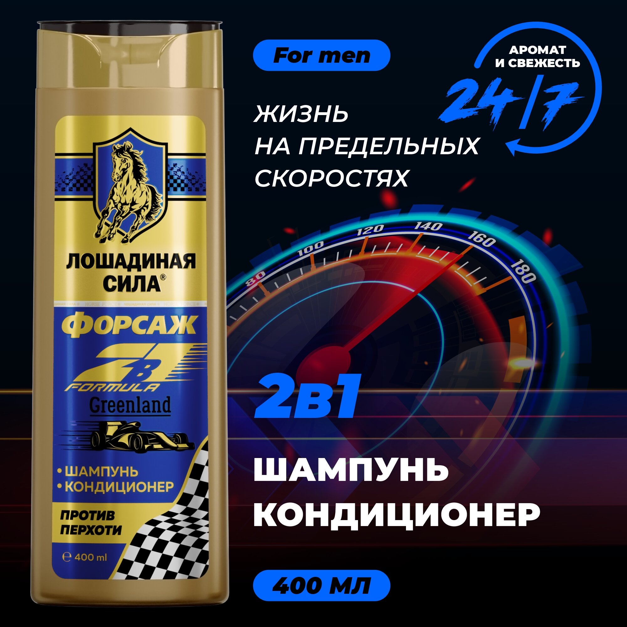 Купить Лошадиная Сила Шампунь от перхоти мужской 2в1 с ароматом бергамота и мяты Формула Форсаж Гренландия, 400мл