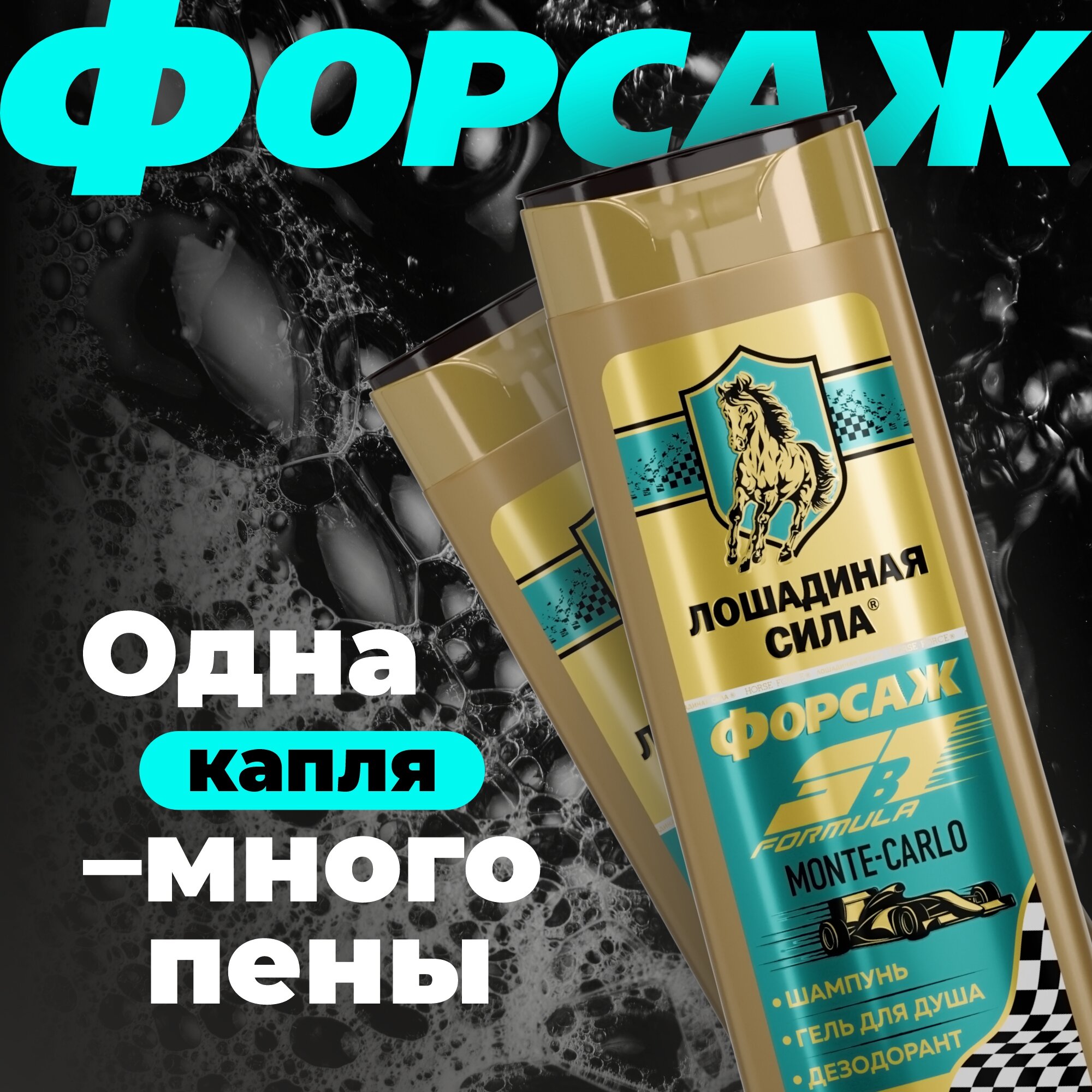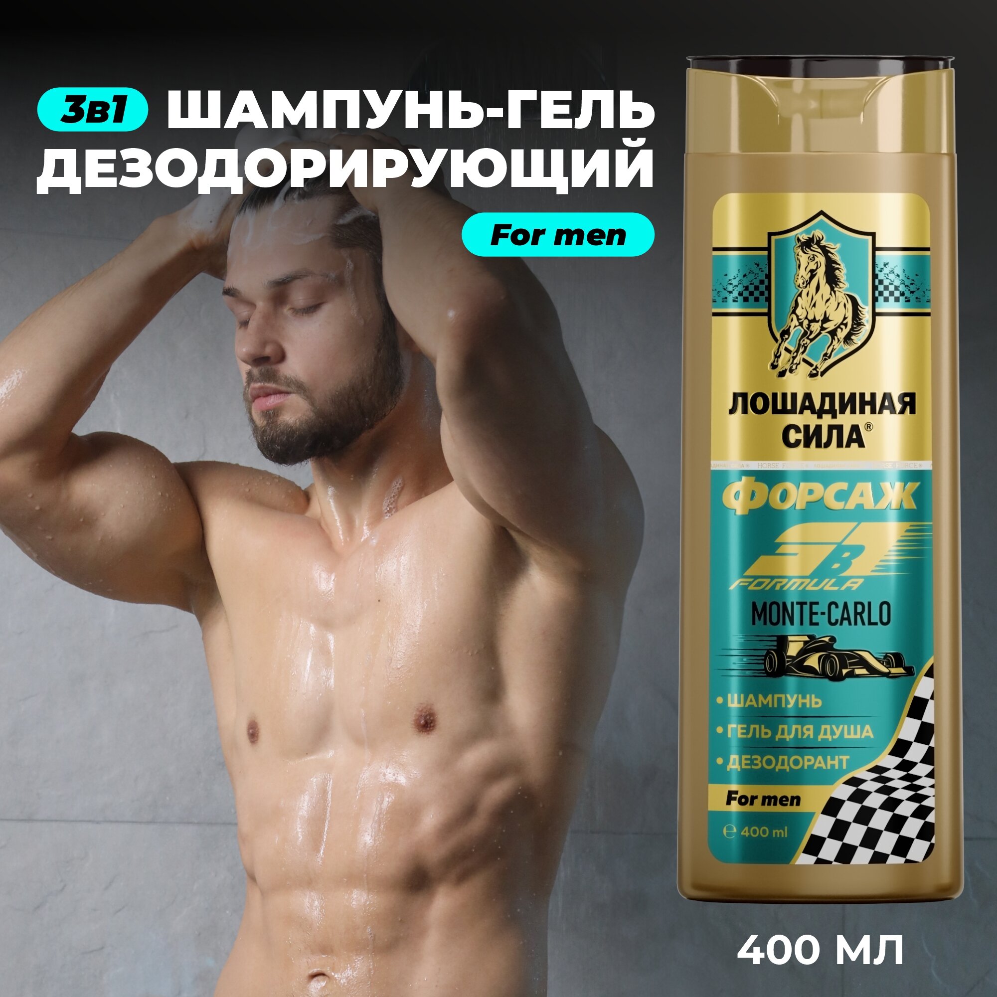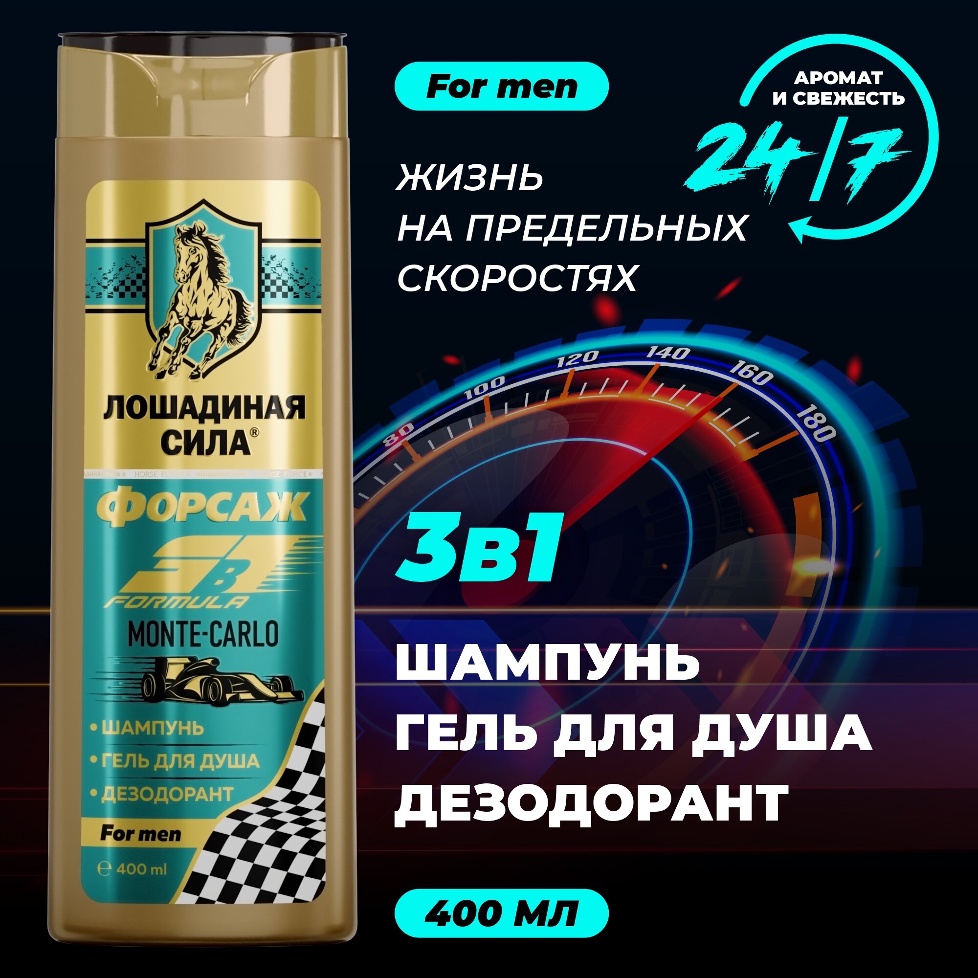 Купить Шампунь мужской для волос и гель для душа 3в1 Лошадиная Сила с нотками уда и ванили «Формула Форсаж Монте-Карло» 400 мл